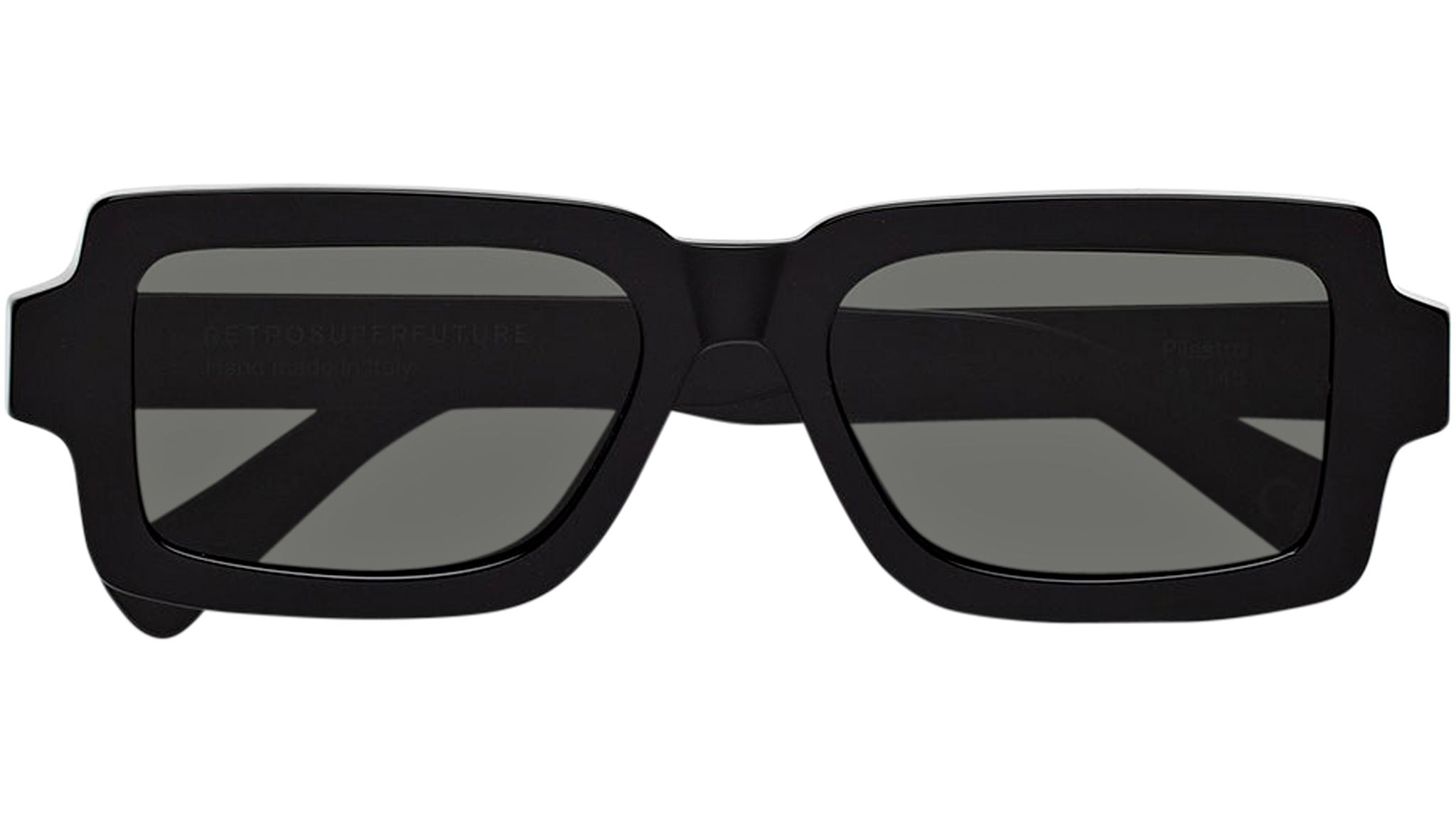 Pilastro is a sharp contemporary silhouette characterized by a unique geometric design. The model’s innovative shape features rectangular rims that stand out for their particularly wide and low-riding proportions. The thick acetate construction of the Pilastro is a crossover between 1970s exuberance and 2000s street-edge. Conceived as a unisex shape, this version of the Pilastro features a shiny black acetate with matching lenses. Sizes: R Lens Width: 54 mm. Frame Front: Frame Side: 145 mm. Product Code Size R: JHJ