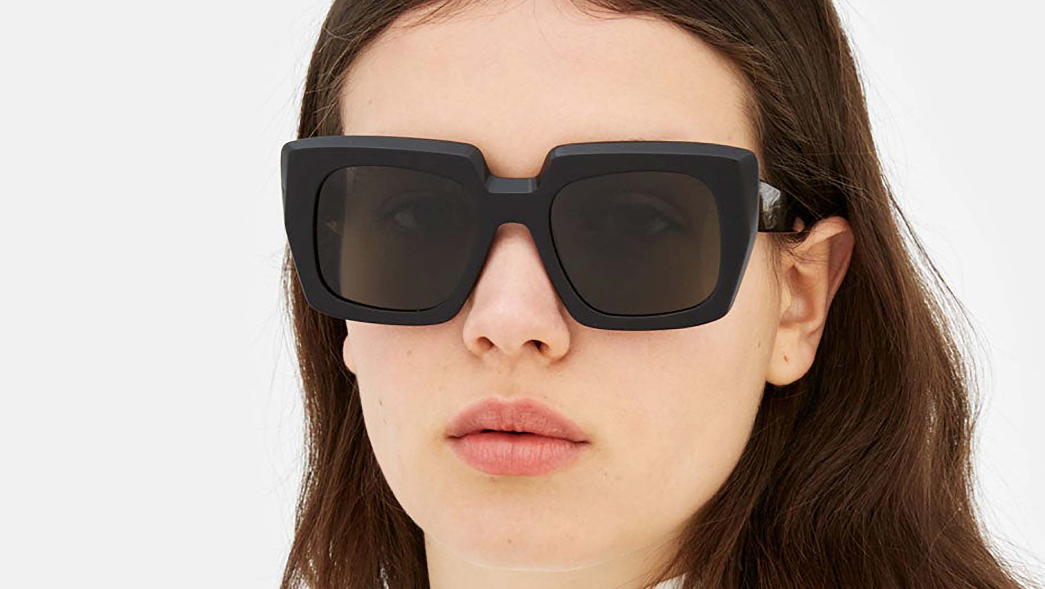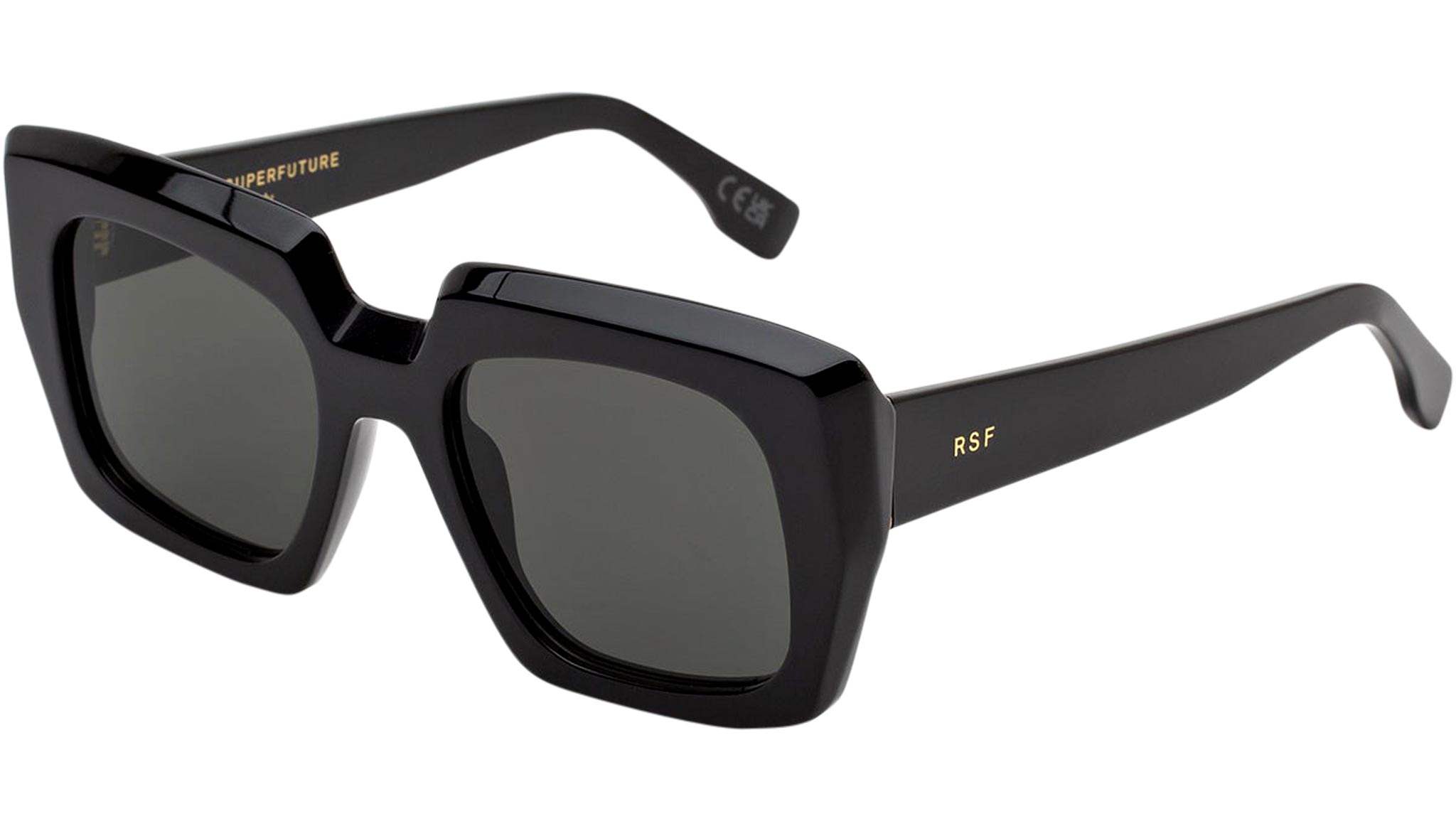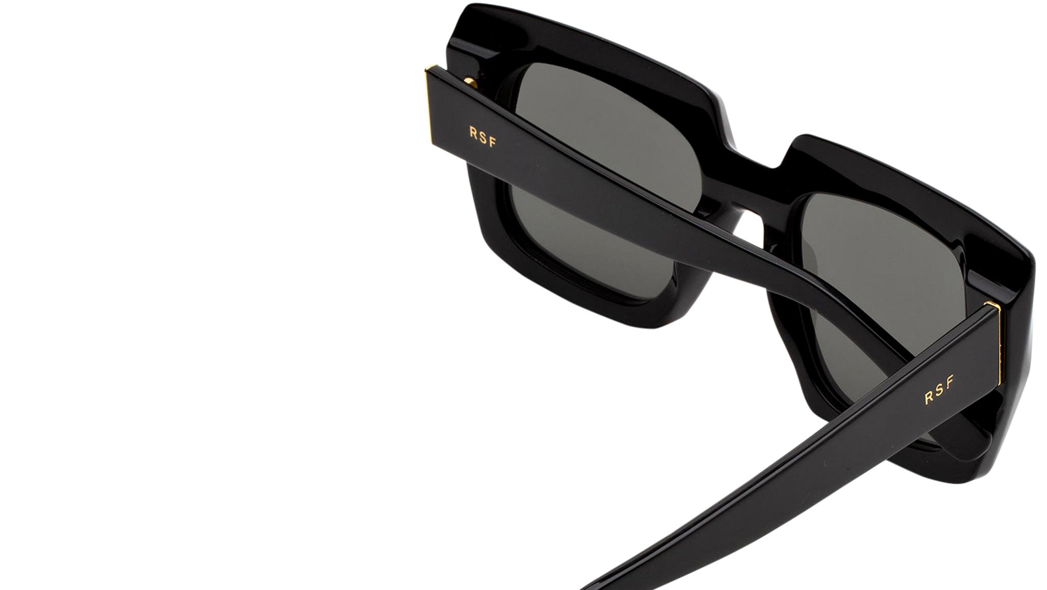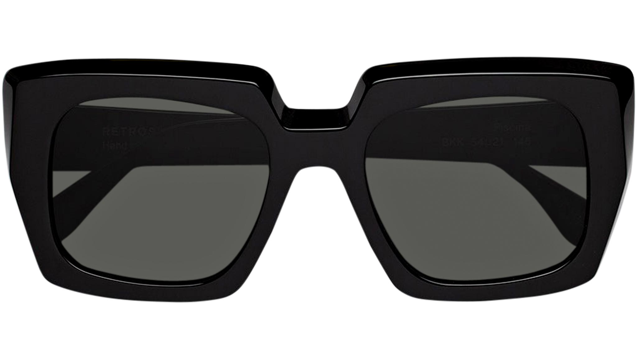 Piscina is a statement piece of eyewear characterized by its unique geometric design, stand-out oversized lenses and thick sculpted rims. The model is inspired by over-the-top late 70s aesthetics, reinterpreted for a more cutting-edge contemporary sensibility. A unisex design, Piscina features thick rims on the upper line, chiselled to form a slanted, elegant profile. Bold temples and a thick nose-bridge complete this model that is brimming with character. This version features shiny black acetate with matching lenses. Sizes: R Lens Width: 54 mm. Frame Front: Frame Side: 145 mm. Product Code Size R: BKK