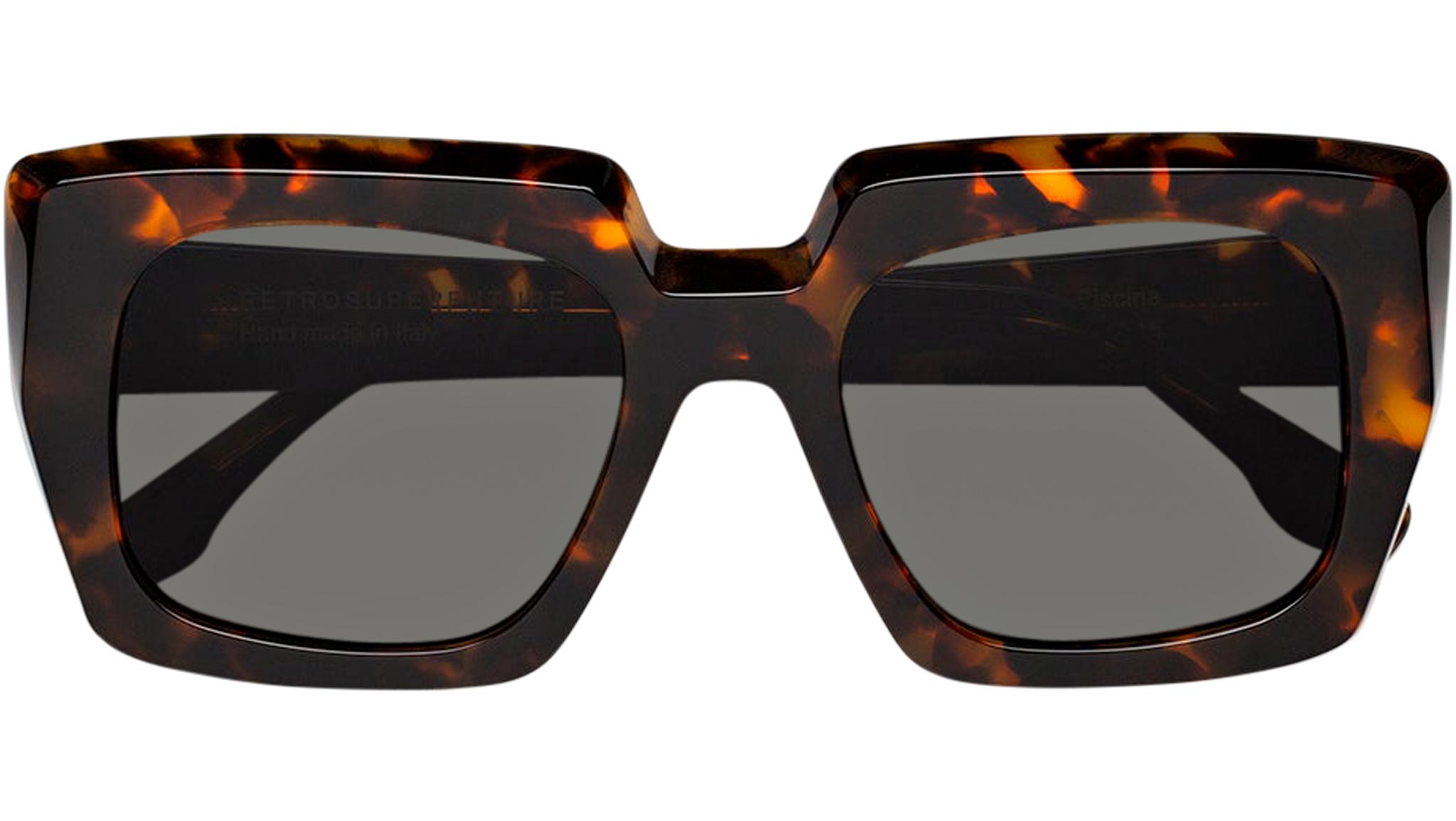 Piscina is a statement piece of eyewear characterized by its unique geometric design, stand-out oversized lenses and thick sculpted rims. The model is inspired by over-the-top late 70s aesthetics, reinterpreted for a more cutting-edge contemporary sensibility. A unisex design, Piscina features thick rims on the upper line, chiselled to form a slanted, elegant profile. Bold temples and a thick nose-bridge complete this model that is brimming with character. This version features a unique and rich Havana acetate with black lenses. Sizes: R Lens Width: 54 mm. Frame Front: Frame Side: 145 mm. Product Code Size R: ZYS