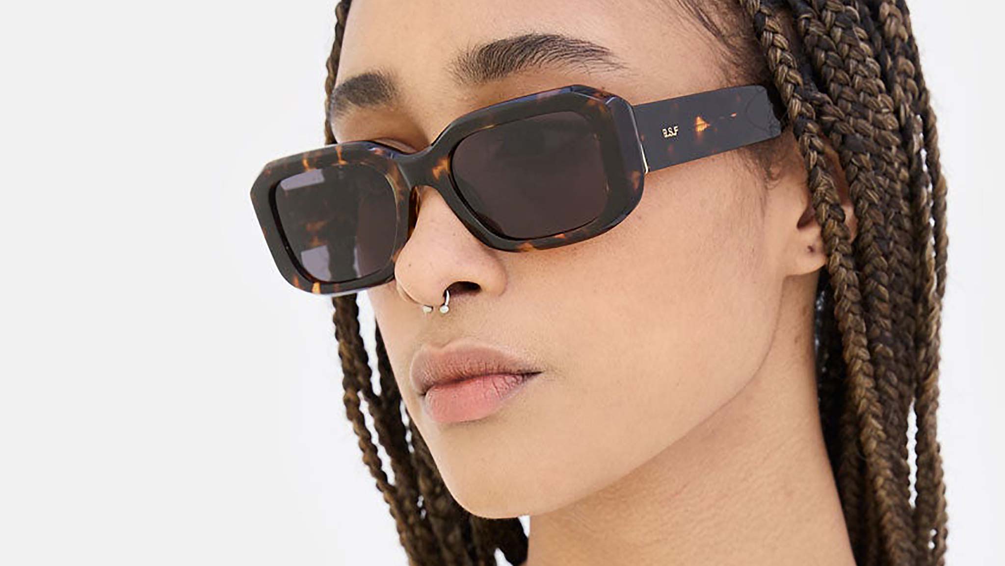 A distinctive yet sleek shape, Sagrado is a bold piece characterized by RSF’s sturdy acetate construction and attention to essential details. A crossover that balances effortless elegance and edgy contemporary design, Sagrado is a modern classic, crafted to be worn day-to-day. The silhouette features wide semi-flat lenses, meticulously encased within chiseled rims with a lowered nose-bridge and thick temples. This version of the Sagrado comes in a rich and unique Havana acetate with black lenses. Sizes: R Lens Width: 53 mm. Frame Front: Frame Side: 145 mm. Product Code Size R: EMM