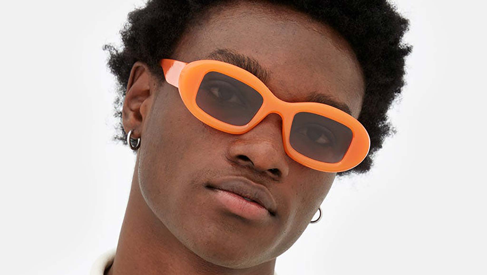 Contrasting geometries and sleek design characterise this modern icon: Tutto is a wide, horizontal shape featuring tick and curvy rims encasing squared lenses. Conceived as a playful yet ultra stylish silhouette, the Tutto embraces the timeless glamour of 1960s feminine shapes with a grungy contemporary unisex edge. This version of the Tutto features a bold orange acetate with purple fading lenses. Sizes: R Lens Width: 50 mm. Frame Front: Frame Side: 145 mm. Product Code Size R: WT4