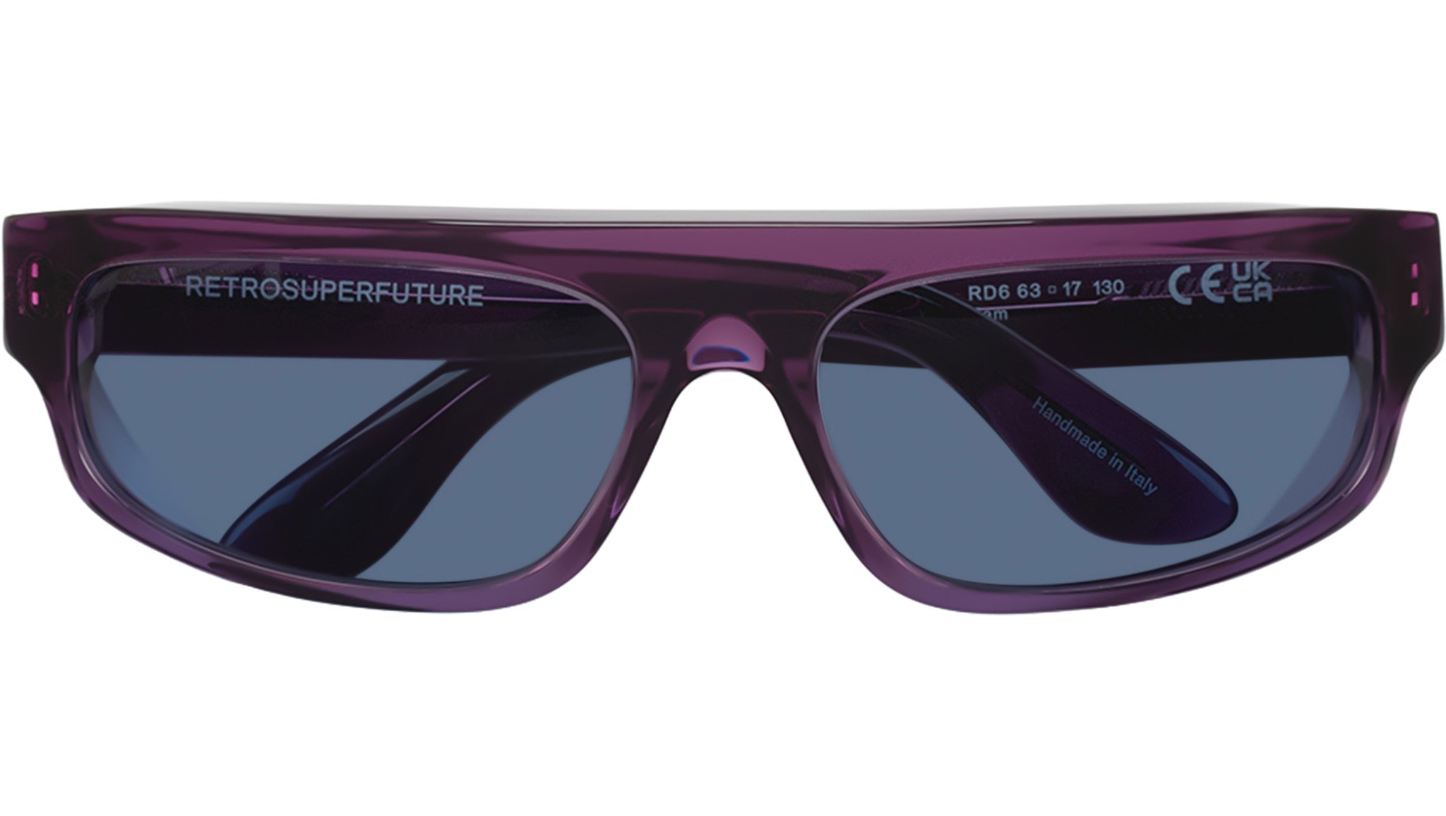 Occhiali da sole Retrosuperfuture Zam Melanzana con montatura in acetato viola e lenti color azzurro. Codice modello: RD6. Made in Italy. Rivenditore autorizzato RSF online. Gli occhiali vengono consegnati con custodia e accessori originali e sono coperti dalla garanzia ufficiale di 12 mesi del produttore.