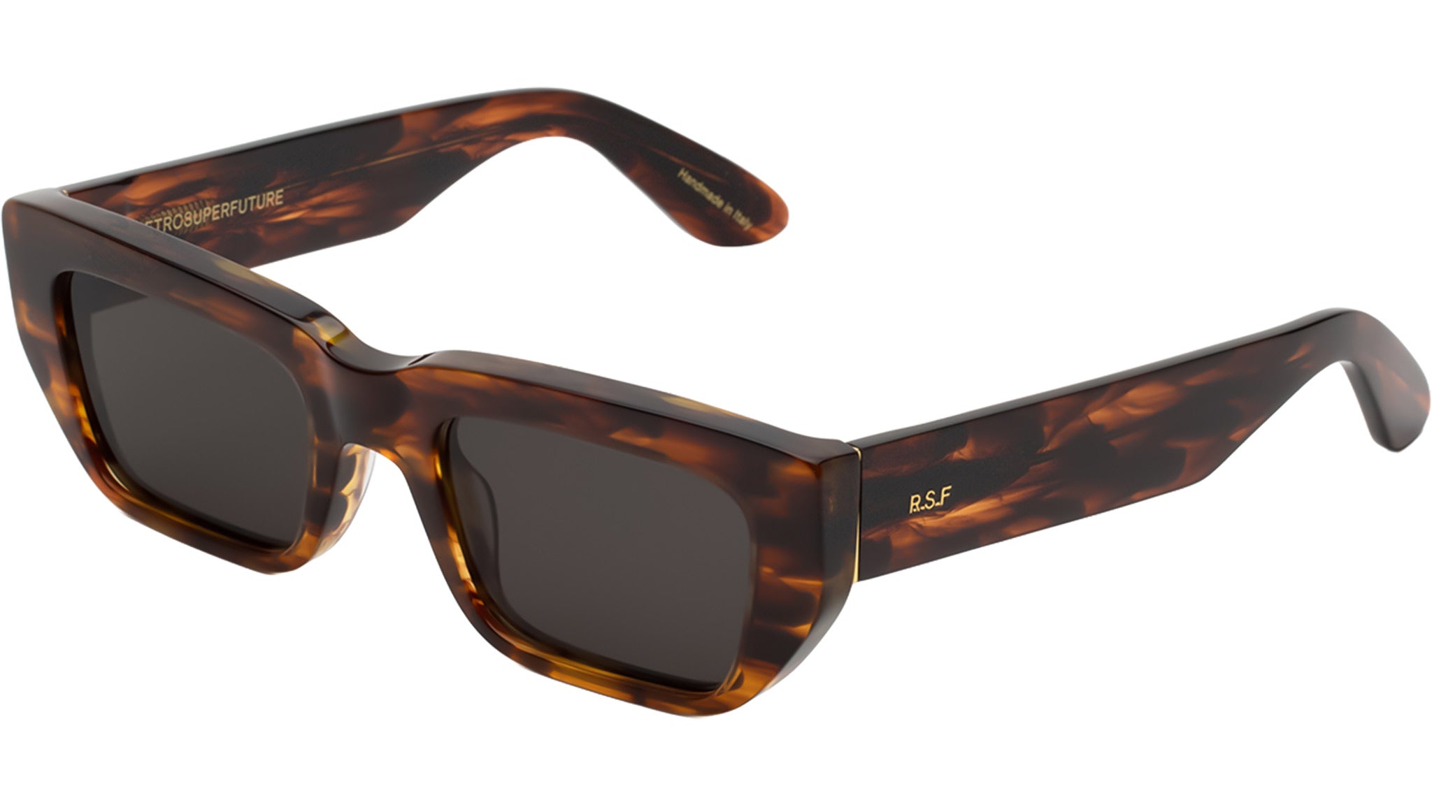 Occhiali da sole Retrosuperfuture Ra Havana Striata con montatura in acetato avana e lenti color nero. Codice modello: OGU. Made in Italy. Rivenditore autorizzato RSF online. Gli occhiali vengono consegnati con custodia e accessori originali e sono coperti dalla garanzia ufficiale di 12 mesi del produttore.
