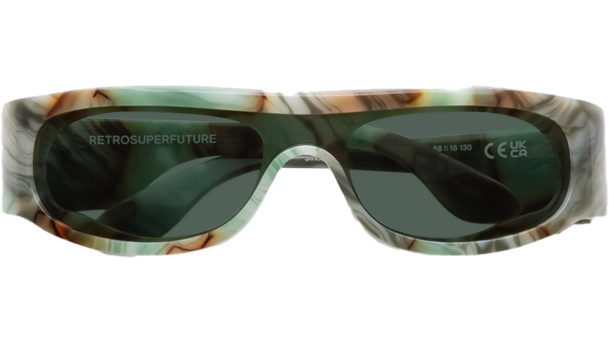 Occhiali da sole Retrosuperfuture Pharoah Onyx con montatura in acetato verde e lenti color verde. Codice modello: 8E9. Made in Italy. Rivenditore autorizzato RSF online. Gli occhiali vengono consegnati con custodia e accessori originali e sono coperti dalla garanzia ufficiale di 12 mesi del produttore.