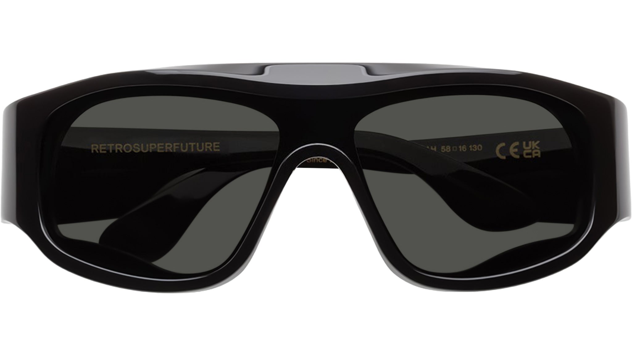 Occhiali da sole Retrosuperfuture Ufo Black con montatura in acetato nero e lenti color nero. Codice modello: LAH. Made in Italy. Rivenditore autorizzato RSF online. Gli occhiali vengono consegnati con custodia e accessori originali e sono coperti dalla garanzia ufficiale di 12 mesi del produttore.