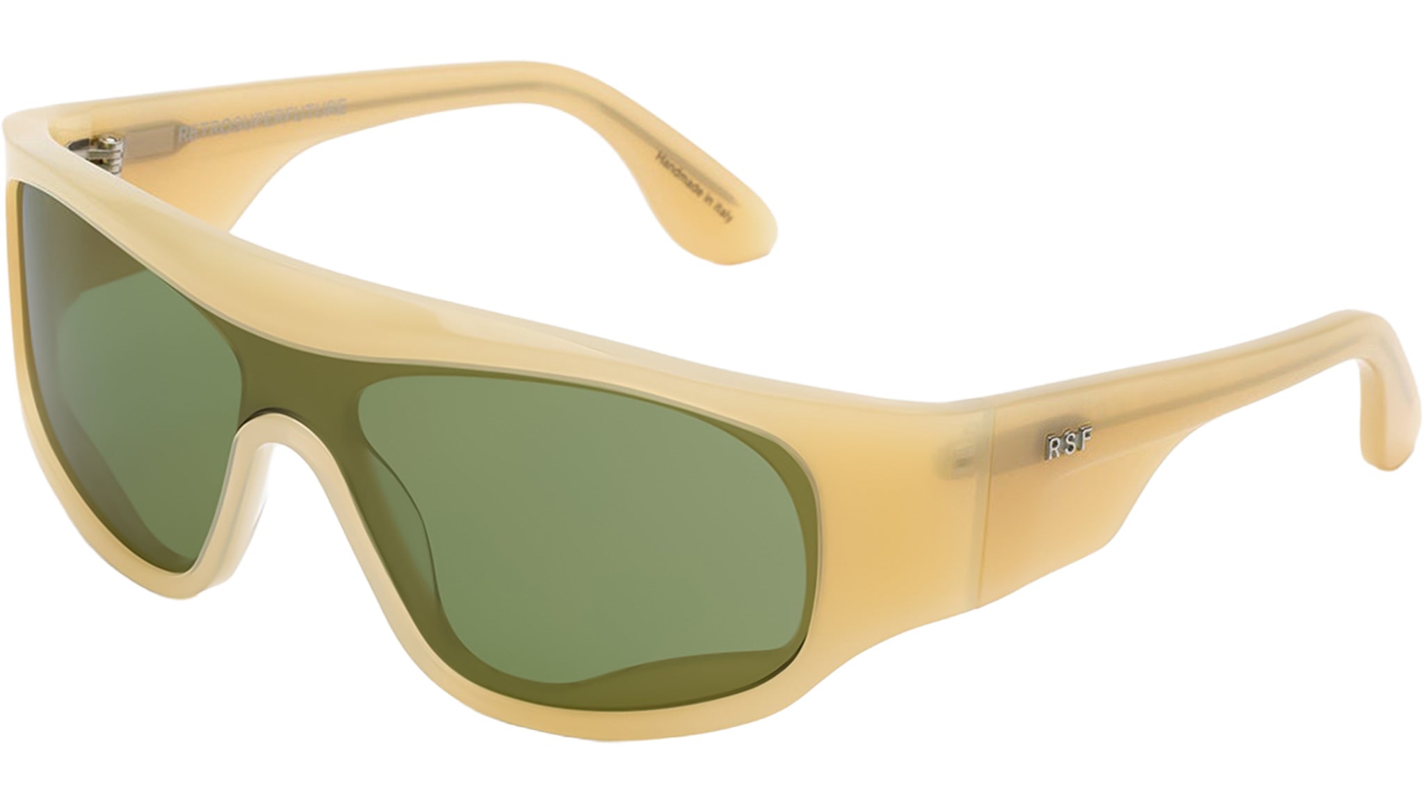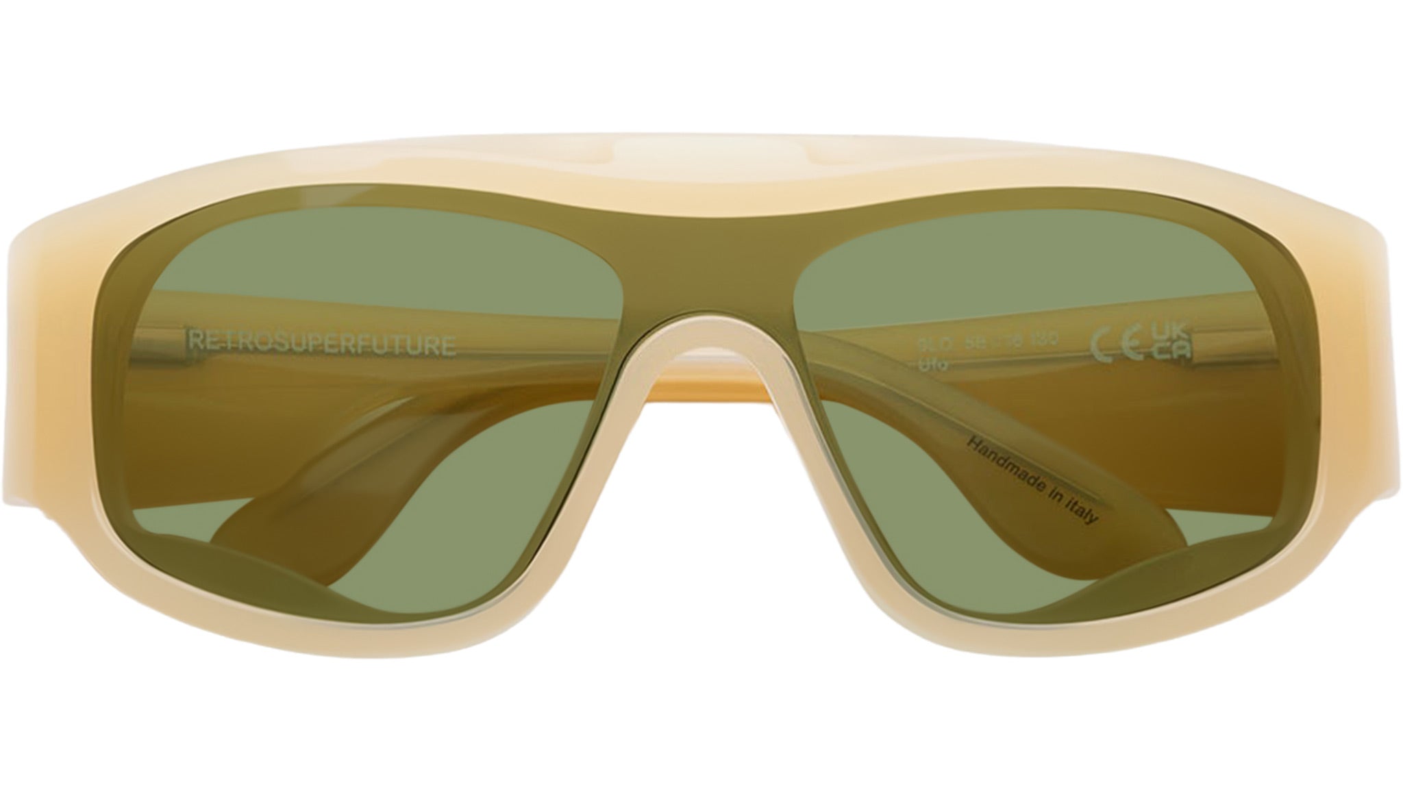 Occhiali da sole Retrosuperfuture Ufo Cremoso con montatura in acetato crema e lenti color verde. Codice modello: 9LO. Made in Italy. Rivenditore autorizzato RSF online. Gli occhiali vengono consegnati con custodia e accessori originali e sono coperti dalla garanzia ufficiale di 12 mesi del produttore.