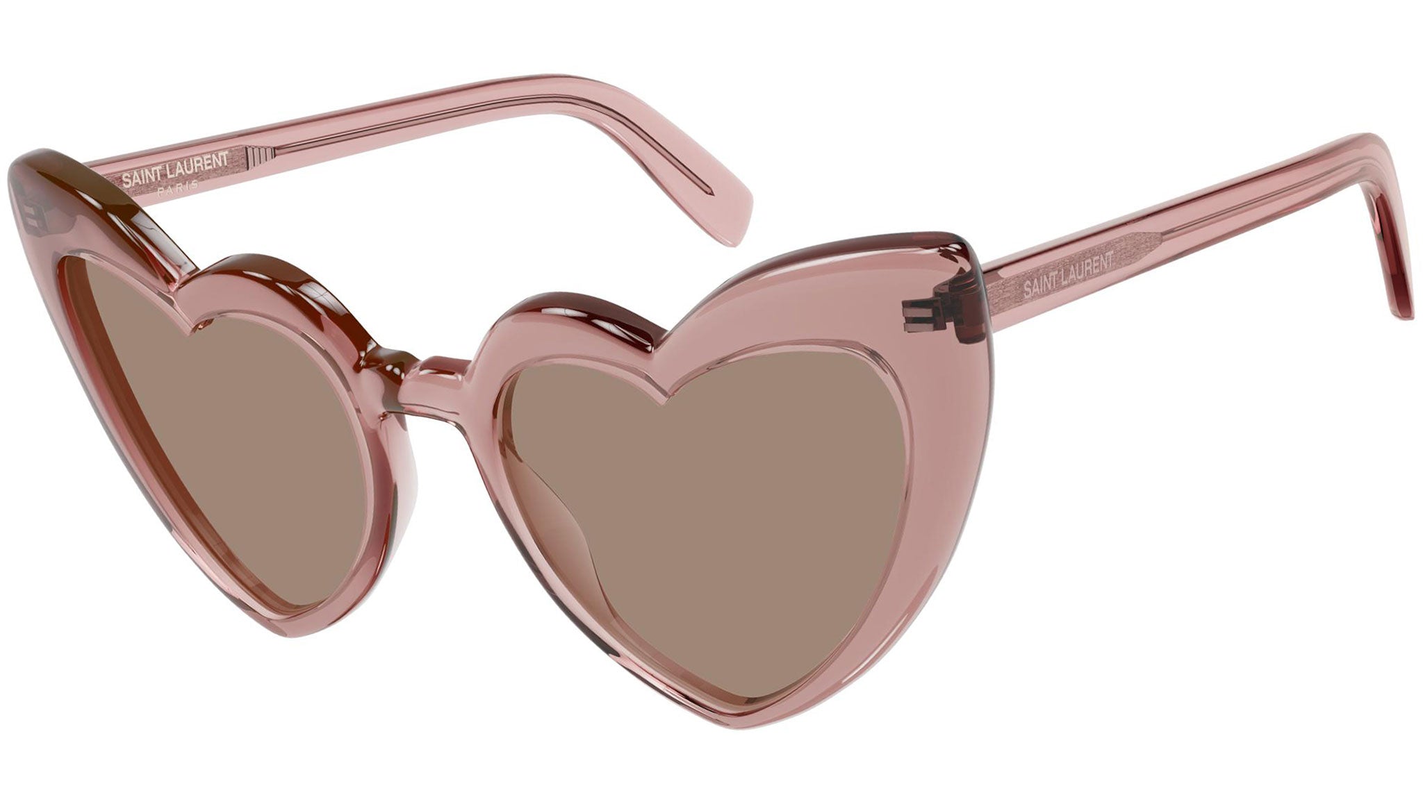 Occhiali da sole Saint Laurent linea New Wave modello SL 181 LOULOU variante colore 023 rosa anticato trasparente lucido con lenti color marrone chiaro tinta unita.