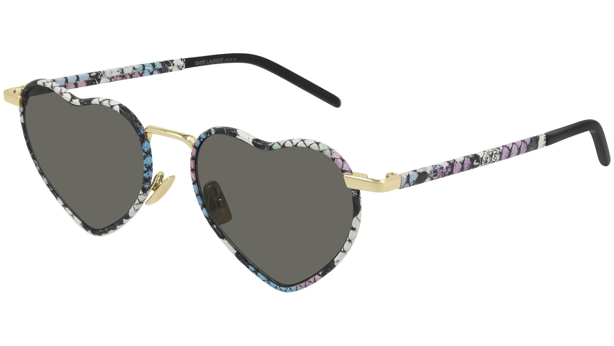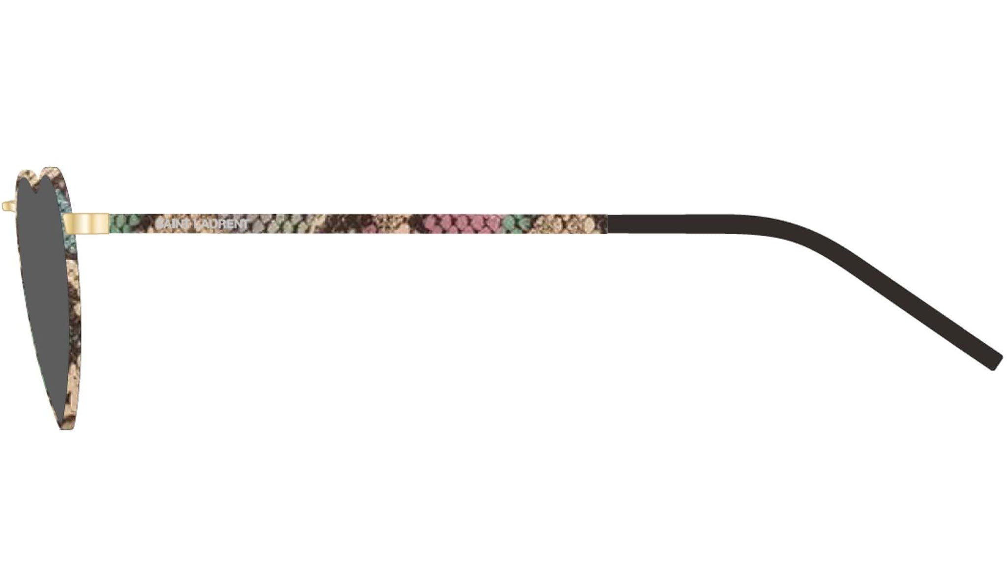 Occhiali da sole linea New Wave modello SL 301 LOULOU 010, variante colore oro chiaro lucido e pelle multicolore con lenti color grigio tinta unita. Saint Laurent Eyewear rappresenta in pieno le attitudini uniche del brand: stile senza tempo coniugato a un moderno concetto di lusso. La collezione sole offre una raffinata selezione di prodotti unici, contraddistinti da una qualità inarrivabile.