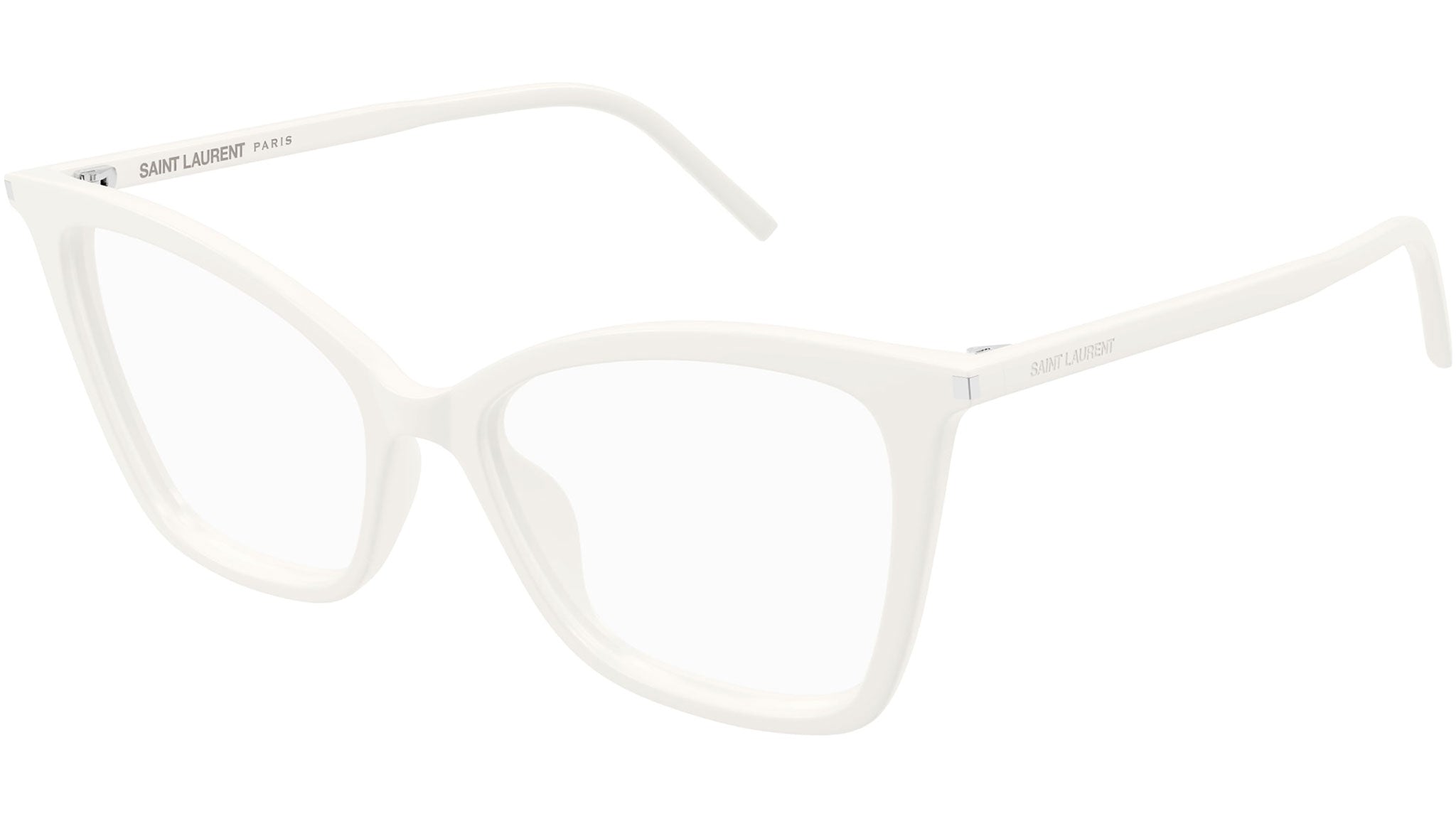 Occhiali da vista Saint Laurent SL 386 donna con montatura cat eye in acetato avorio tinta unita lucido e lenti demo. Linea: Classic. Codice modello: SL 386. Codice colore 55 mm: 017. 53 mm: 009. Made in Italy. Rivenditore autorizzato Saint Laurent online. Gli occhiali vengono consegnati con custodia e accessori originali e sono coperti dalla garanzia ufficiale di 12 mesi del produttore.