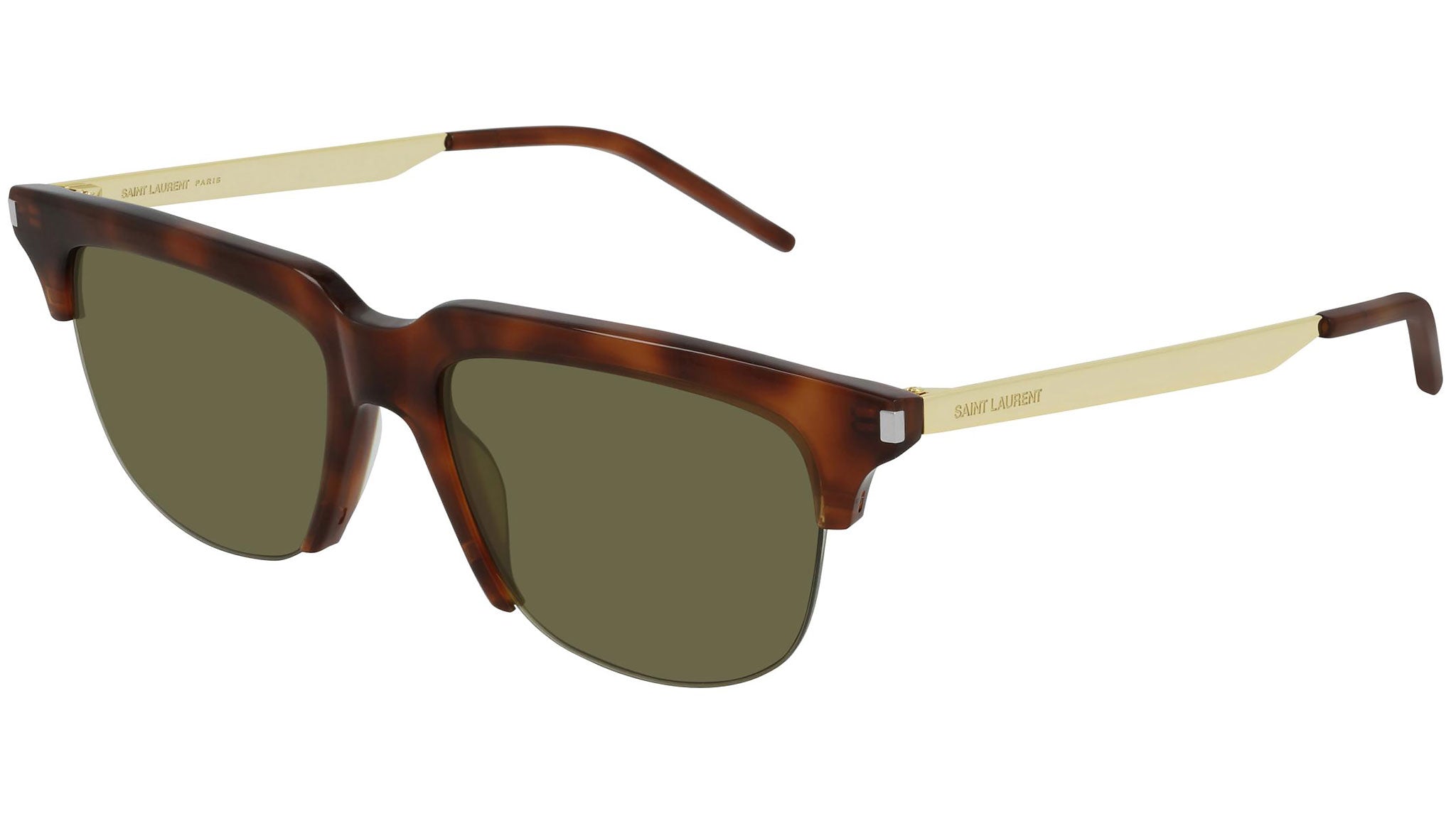 Occhiali da sole linea New Wave modello SL 420 001, variante colore beige avana lucido con lenti color verde kaki tinta unita. Saint Laurent Eyewear rappresenta in pieno le attitudini uniche del brand: stile senza tempo coniugato a un moderno concetto di lusso. La collezione sole offre una raffinata selezione di prodotti unici, contraddistinti da una qualità inarrivabile.