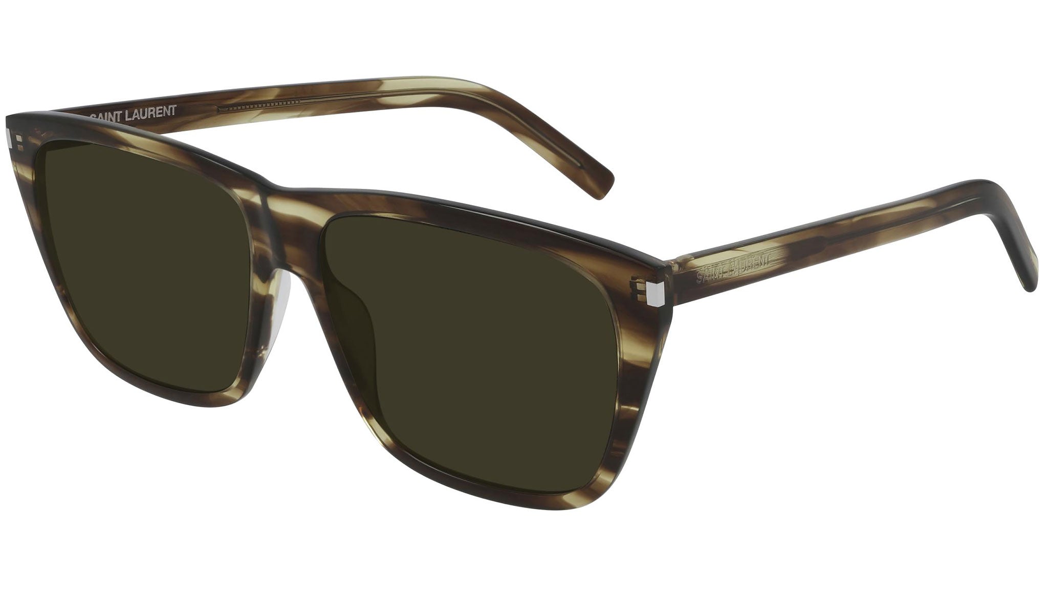 Occhiali da sole linea Classic modello SL 431 SLIM 005, variante colore melange avana e miele lucido con lenti color verde tinta unita. Saint Laurent Eyewear rappresenta in pieno le attitudini uniche del brand: stile senza tempo coniugato a un moderno concetto di lusso. La collezione sole offre una raffinata selezione di prodotti unici, contraddistinti da una qualità inarrivabile.