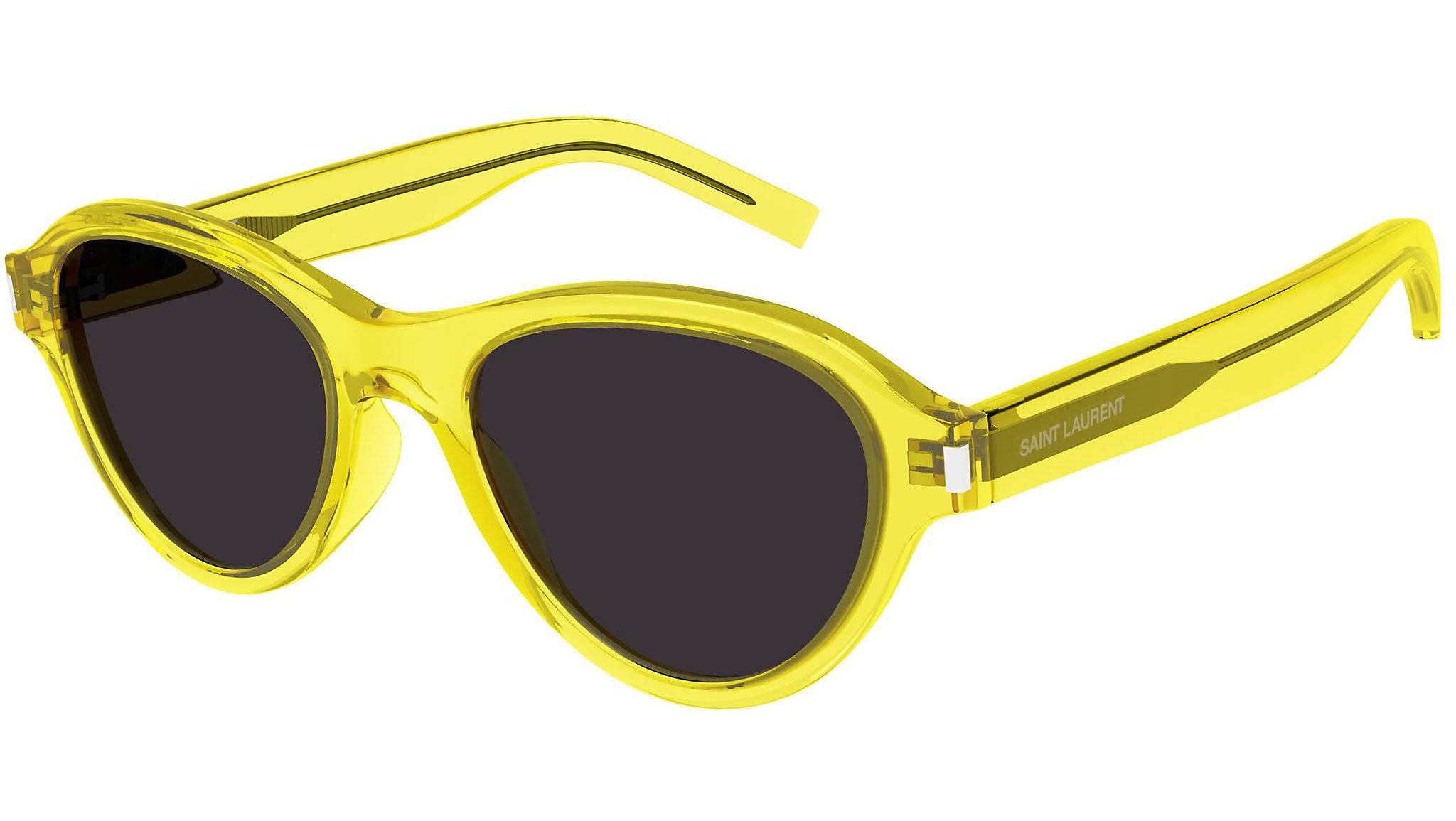 Occhiali da sole Saint Laurent linea New Wave modello SL 520 SUNSET 006, variante colore giallo lucido trasparente con lenti color nero tinta unita. Saint Laurent Eyewear rappresenta in pieno le attitudini uniche del brand: stile senza tempo coniugato a un moderno concetto di lusso. La collezione YSL di occhiali da sole offre una raffinata selezione di prodotti unici, contraddistinti da una qualità inarrivabile.