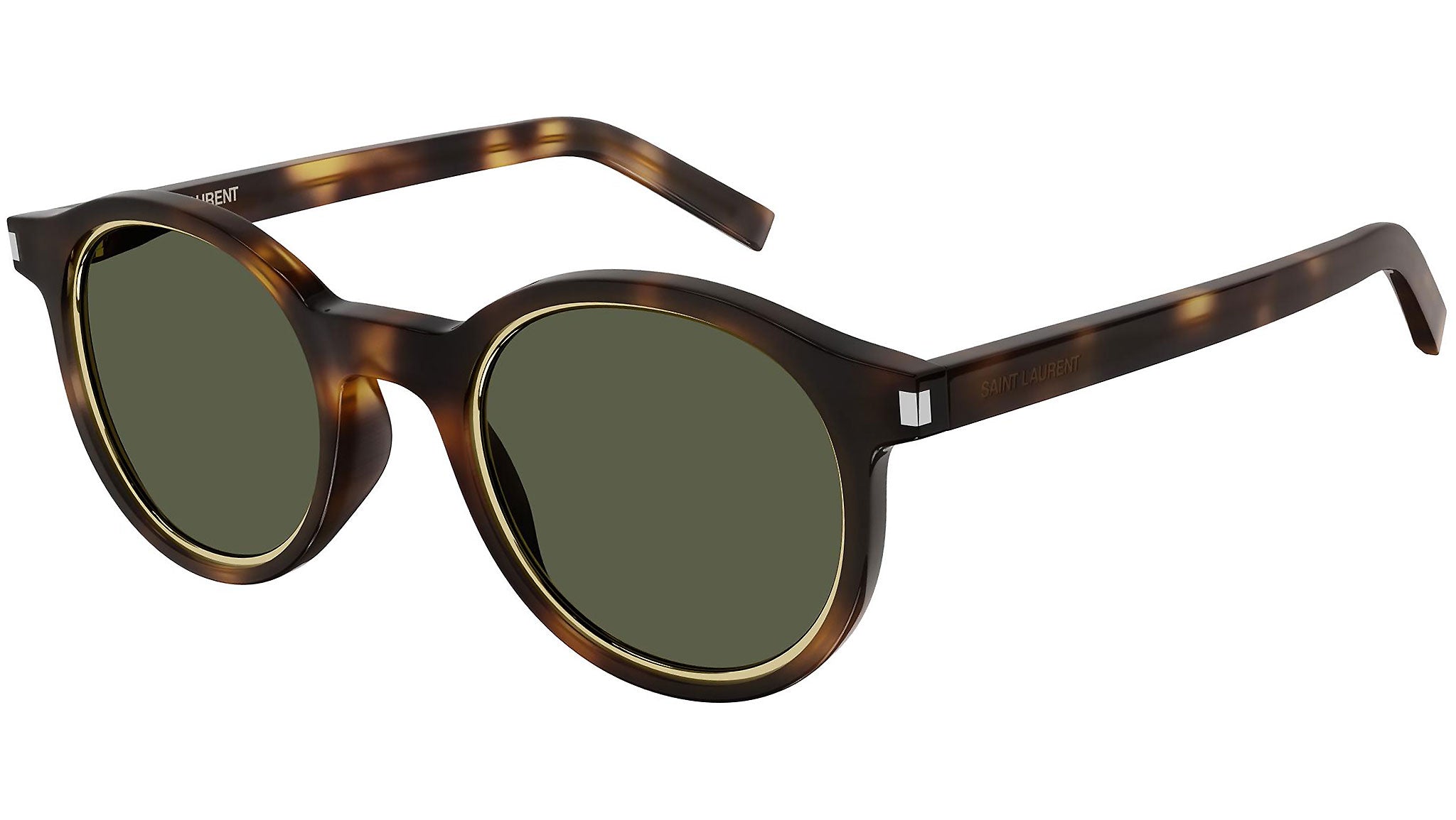 Occhiali da sole Saint Laurent linea New Wave modello SL 521 RIM 003, variante colore avana medio lucido con lenti color verde tinta unita. Saint Laurent Eyewear rappresenta in pieno le attitudini uniche del brand: stile senza tempo coniugato a un moderno concetto di lusso. La collezione YSL di occhiali da sole offre una raffinata selezione di prodotti unici, contraddistinti da una qualità inarrivabile.