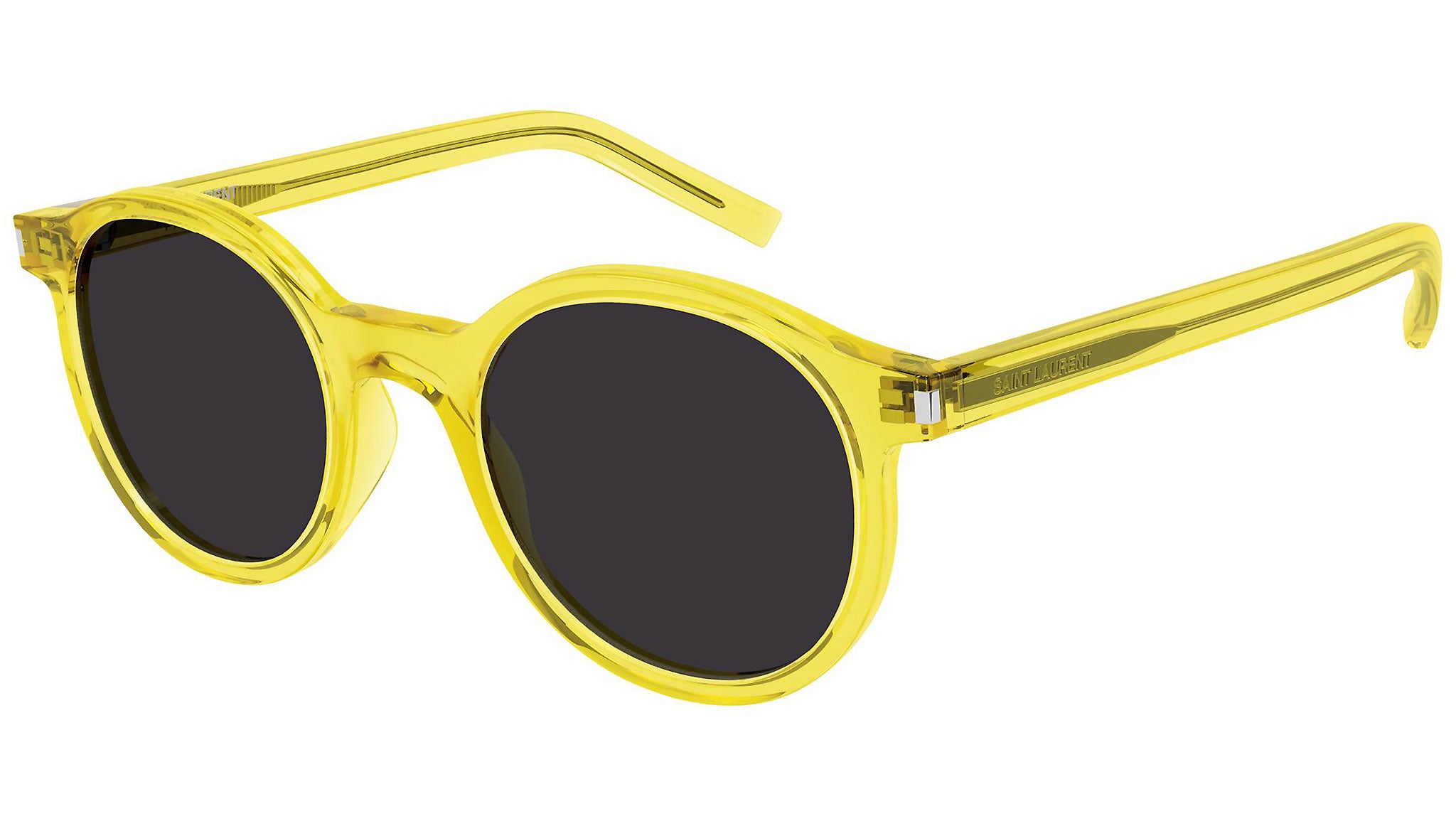 Occhiali da sole Saint Laurent linea New Wave modello SL 521 009, variante colore giallo lucido trasparente con lenti color nero tinta unita. Saint Laurent Eyewear rappresenta in pieno le attitudini uniche del brand: stile senza tempo coniugato a un moderno concetto di lusso. La collezione YSL di occhiali da sole offre una raffinata selezione di prodotti unici, contraddistinti da una qualità inarrivabile.