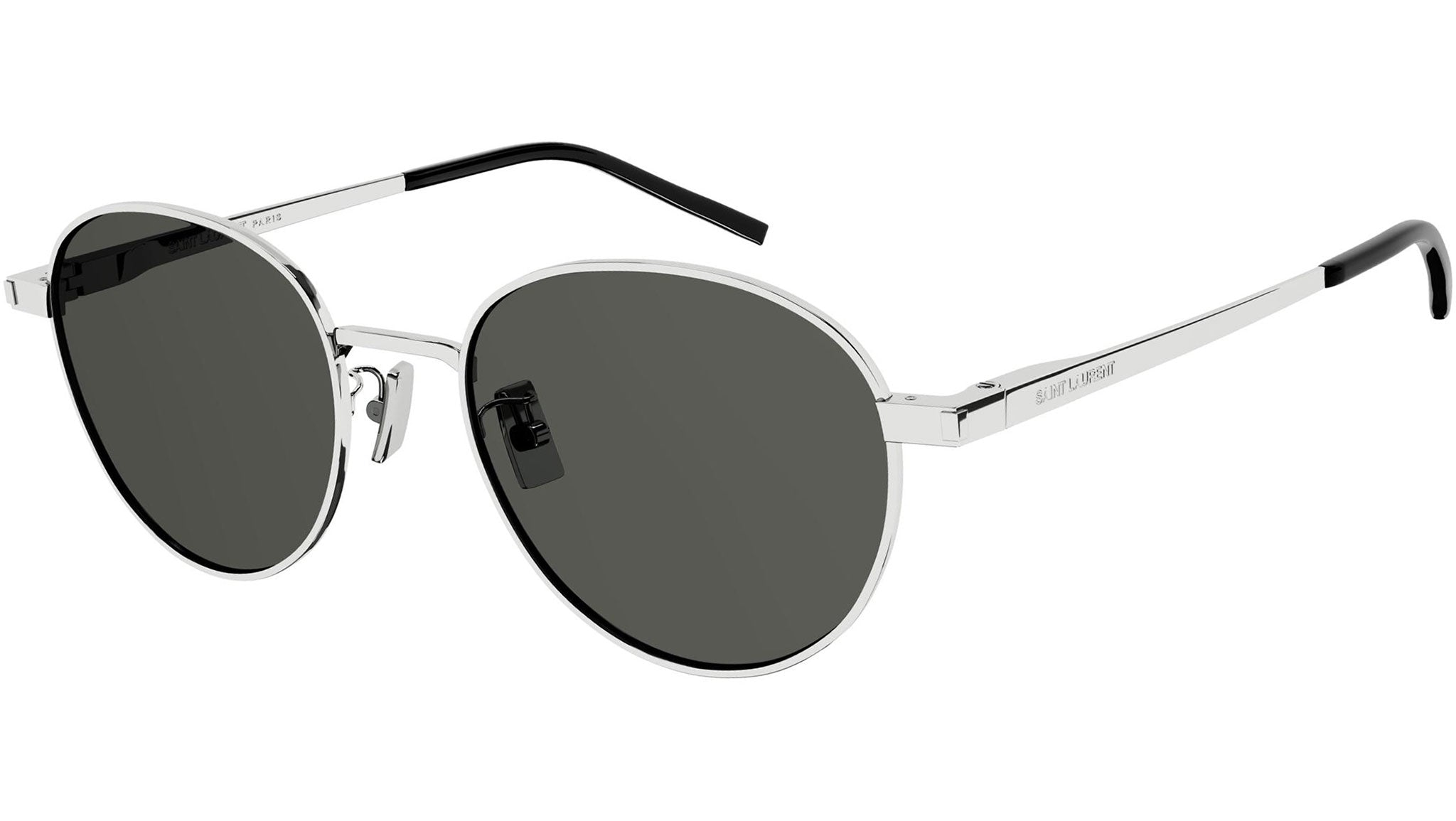 Occhiali da sole Saint Laurent linea Classic modello SL 533 variante colore 010 argento lucido con lenti color grigio tinta unita.