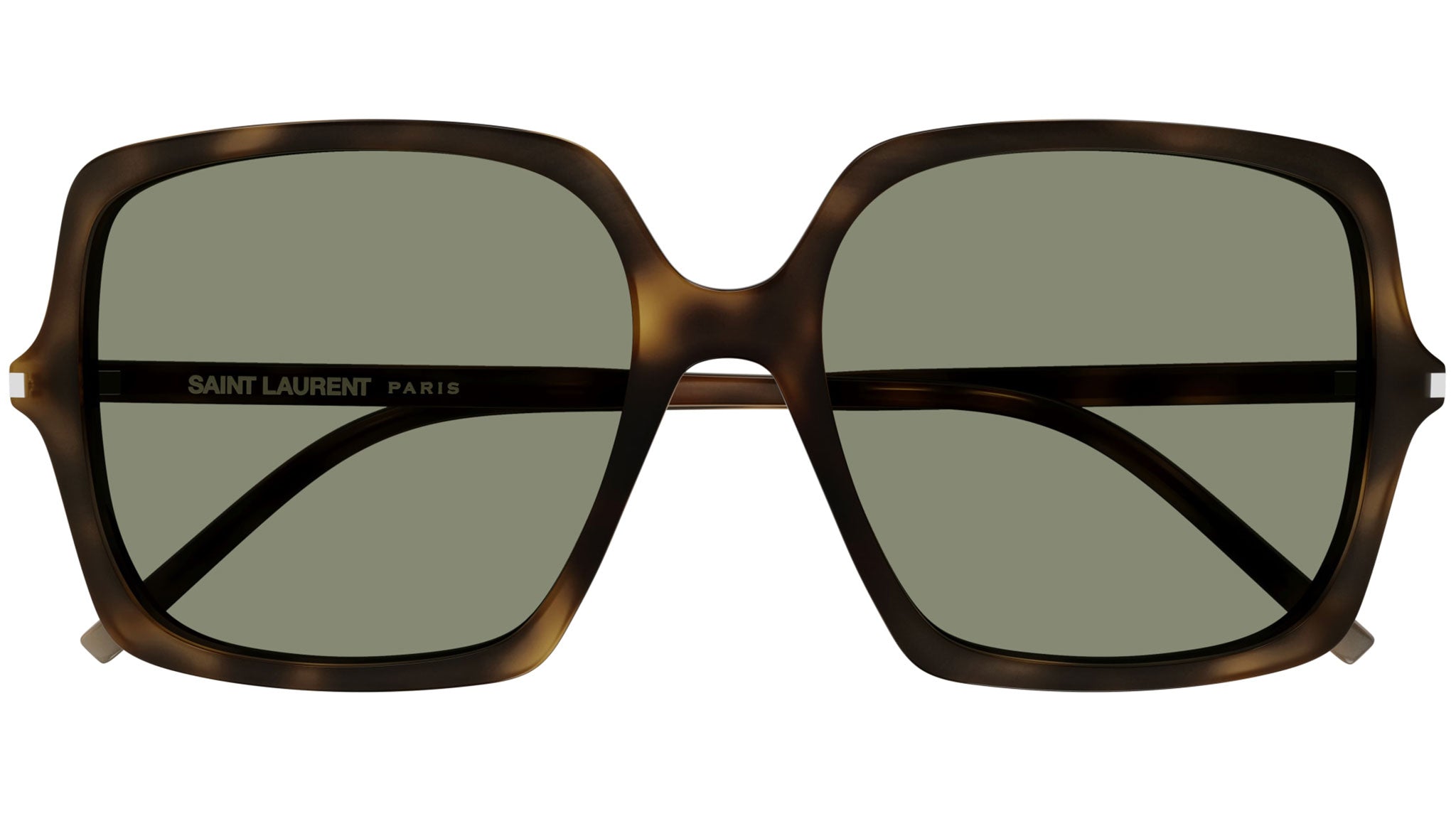 Occhiali da sole Saint Laurent modello SL 591 linea Classic codice colore 002 avana medio lucido in acetato riciclato forma butterfly con lenti color verde tinta unita.