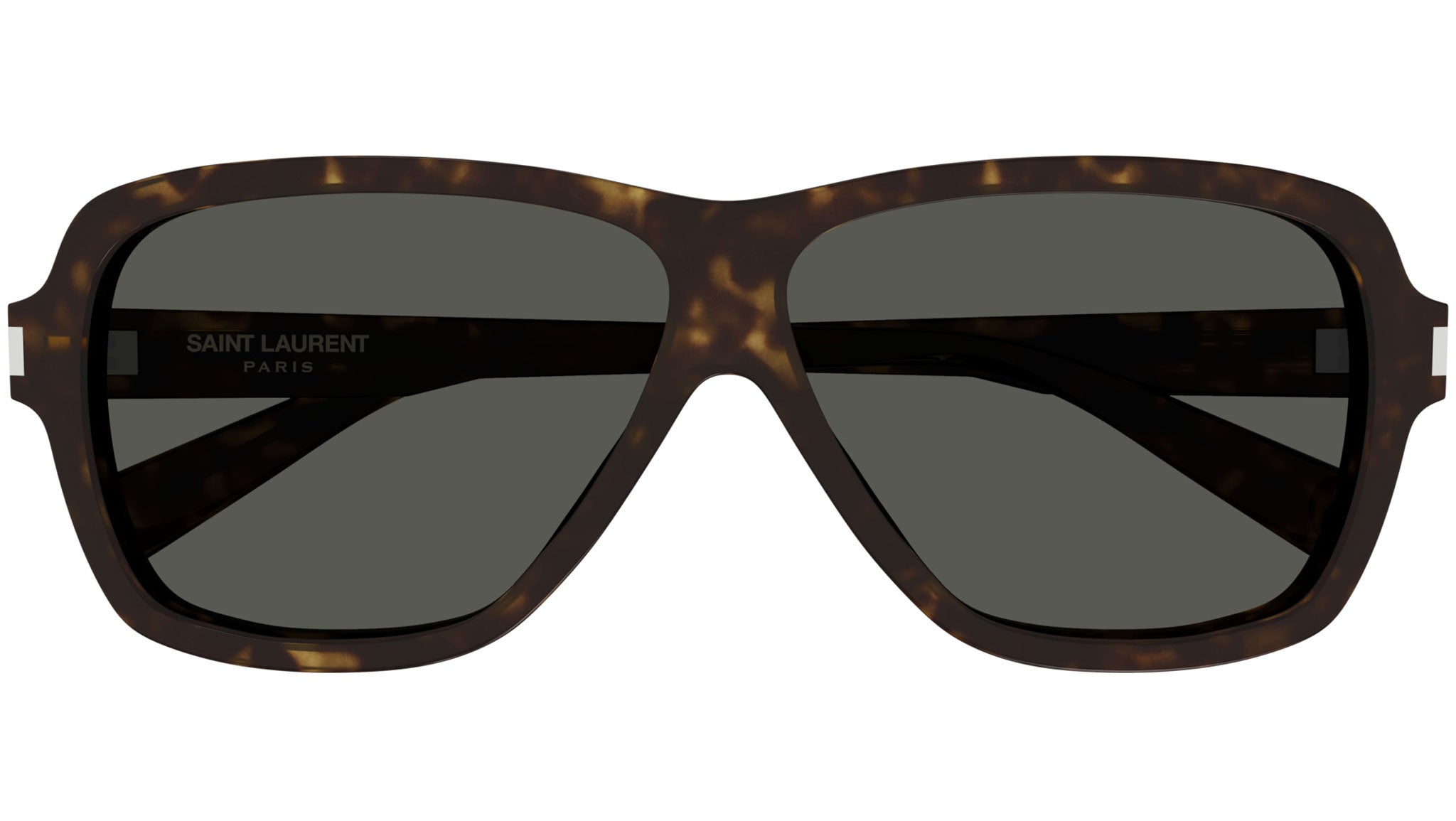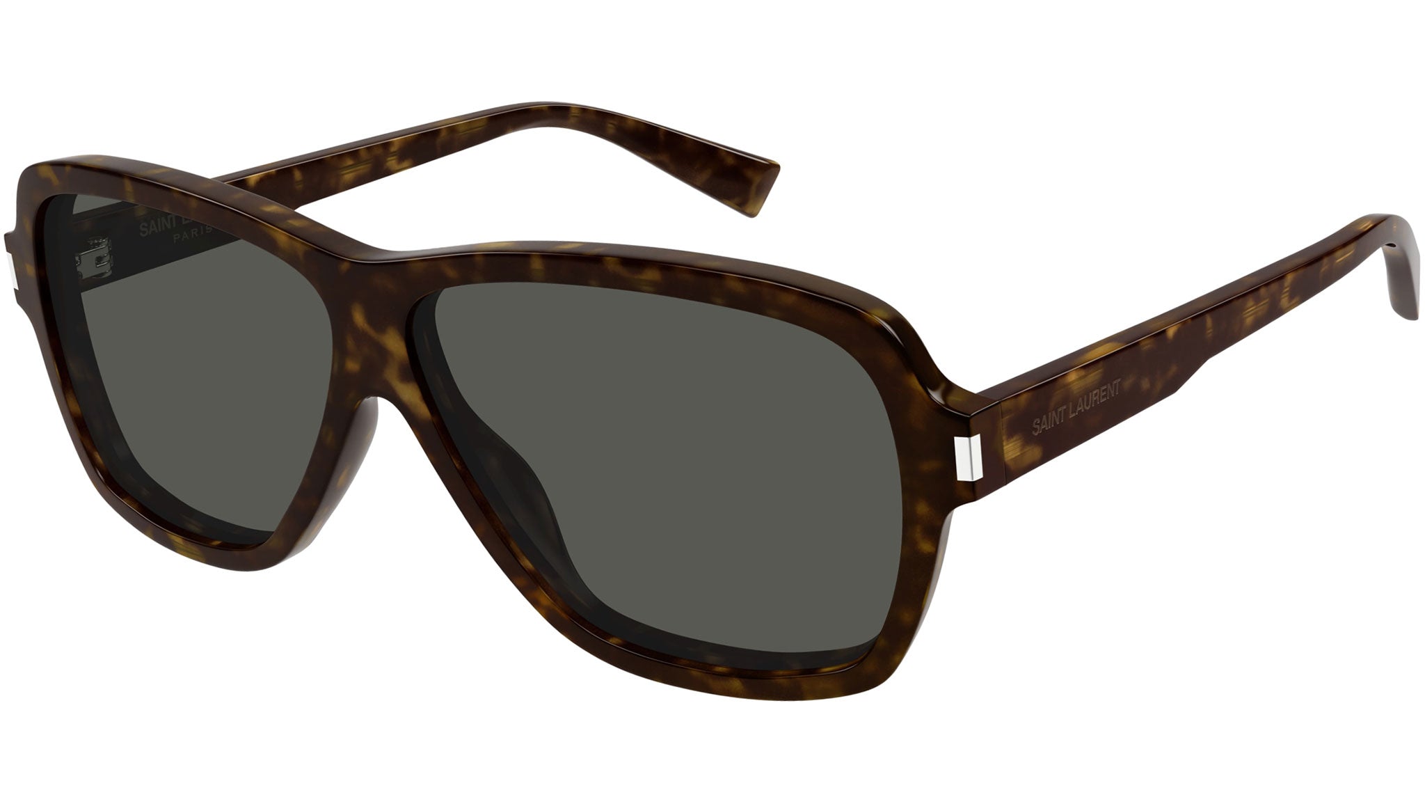 Occhiali da sole Saint Laurent modello SL 609 CAROLYN linea New Wave codice colore 002 tartaruga scuro lucido in acetato riciclato forma aviator con lenti color grigio tinta unita.