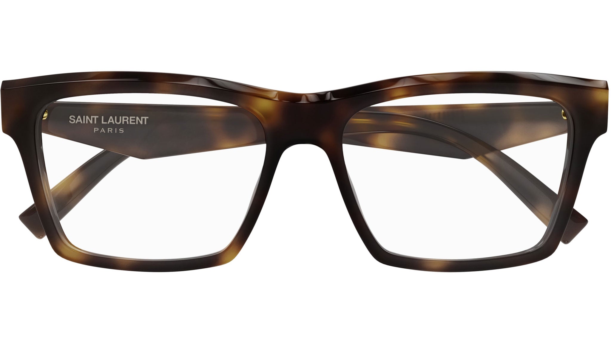 Occhiali da vista Saint Laurent modello SL M104 OPT linea Monogram codice colore 003 avana medio lucido in acetato forma rectangle con aste color tartaruga.