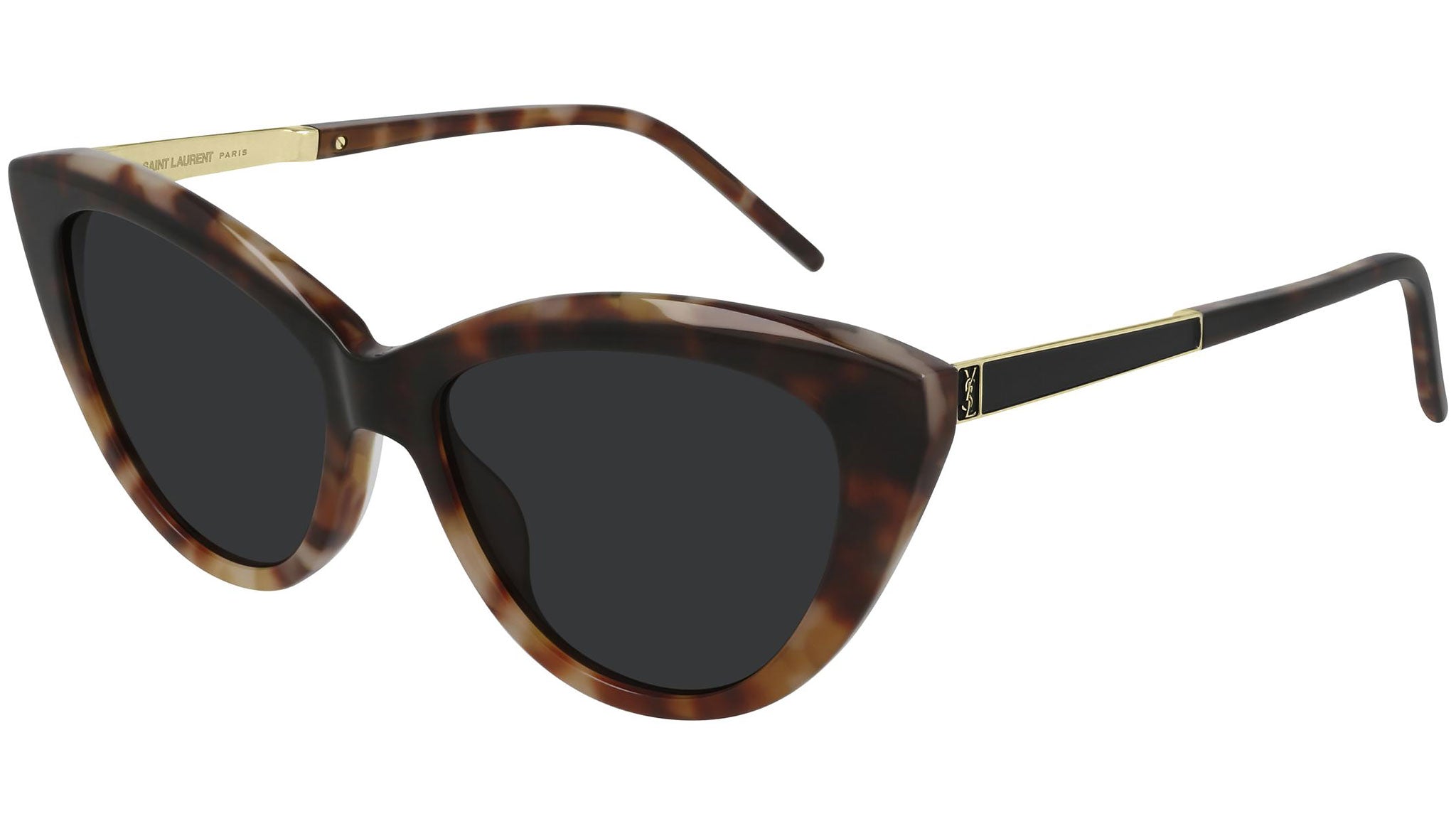 Occhiali da sole linea Monogram modello SL M81 004, variante colore marrone avana sfumato con lenti color nero Saint Laurent tinta unita. Saint Laurent Eyewear rappresenta in pieno le attitudini uniche del brand: stile senza tempo coniugato a un moderno concetto di lusso. La collezione sole offre una raffinata selezione di prodotti unici, contraddistinti da una qualità inarrivabile.