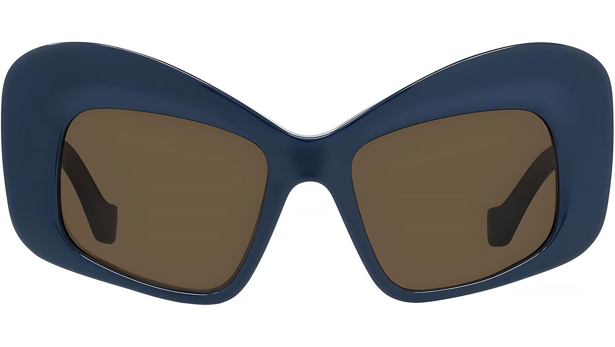 Occhiali da sole LOEWE donna linea Anagram modello LW40128I 90E blu solido. Nuova forma a farfalla trendy ed eccessiva, caratterizzata dal logo decorativo Anagram sulle aste - Rivenditore autorizzato LOEWE online. Gli occhiali vengono consegnati con custodia e accessori originali.