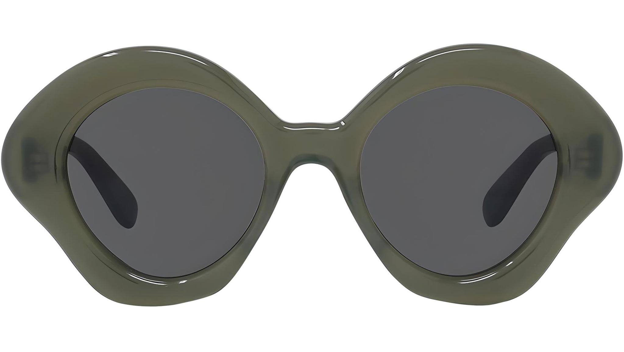 Occhiali da sole LOEWE donna linea Curvy modello LW40125U 96A khaki trasparente. Nuova forma a farfalla che gioca con i colori, caratterizzata dal logo Curvy sulle aste morbide Inflated - Rivenditore autorizzato LOEWE online. Gli occhiali vengono consegnati con custodia e accessori originali.