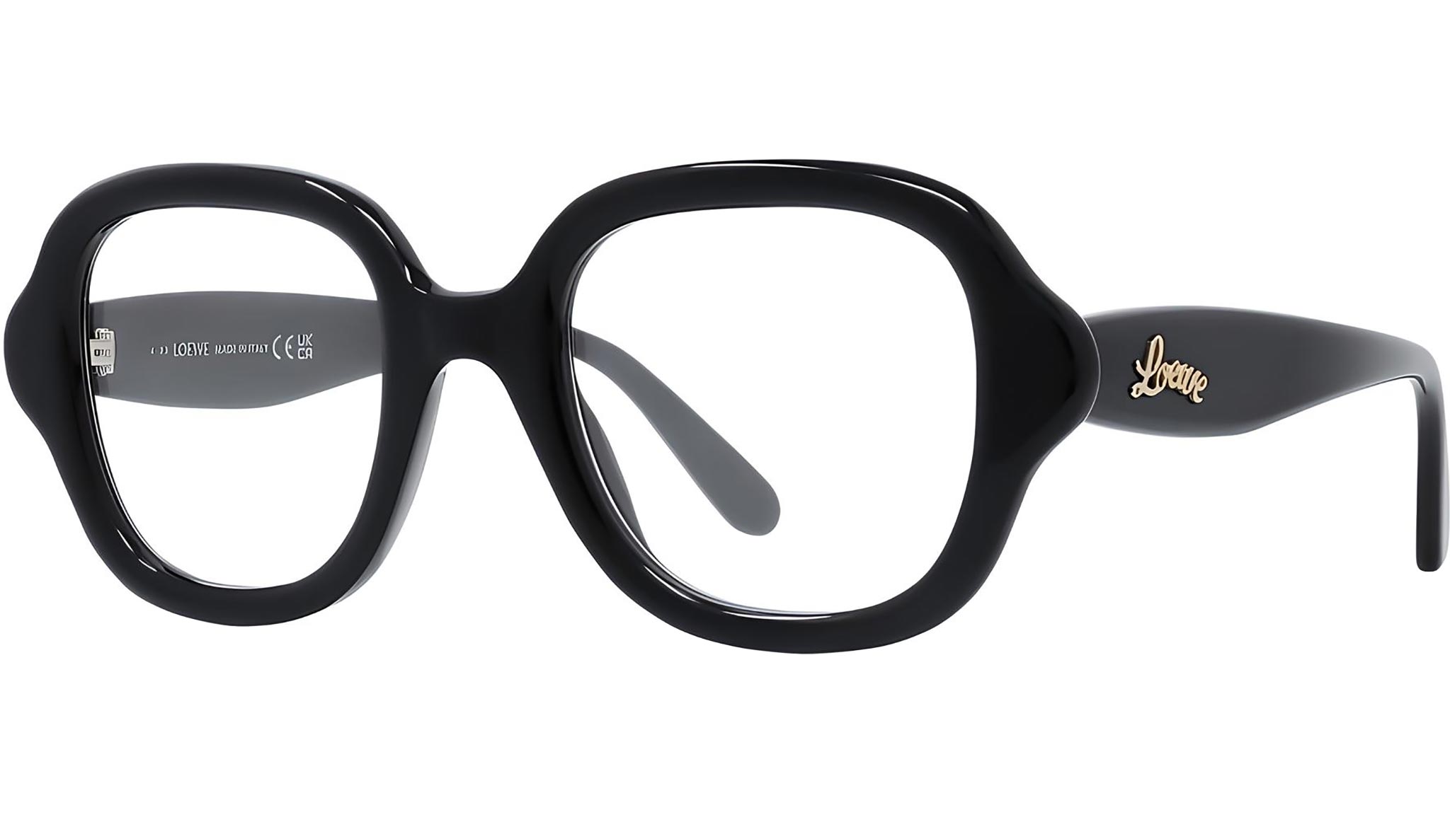 Occhiali da vista LOEWE donna linea Curvy modello LW50075I 001 nero lucido. Montatura dalla forma rettangolare bombé con il logo Curvy sulle aste - Rivenditore autorizzato LOEWE online. Gli occhiali vengono consegnati con custodia e accessori originali.