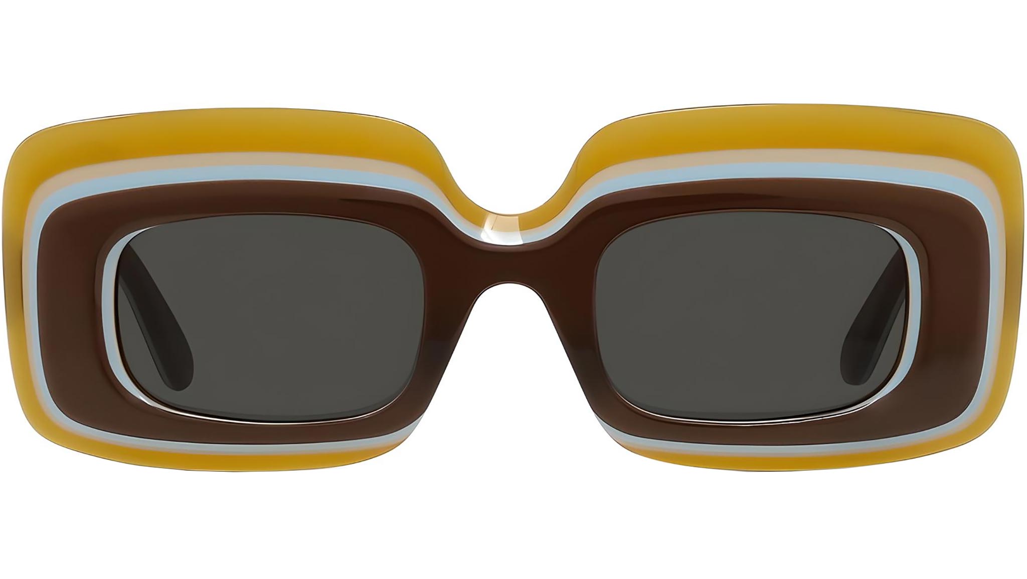 Occhiali da sole LOEWE donna linea Curvy modello LW40139U 47A multicolore marrone azzurro. Nuova forma rettangolare in acetato multistrato, caratterizzata dal logo Curvy sulle aste - Rivenditore autorizzato LOEWE online. Gli occhiali vengono consegnati con custodia e accessori originali.