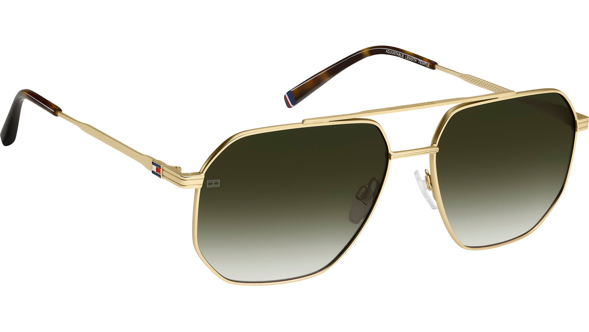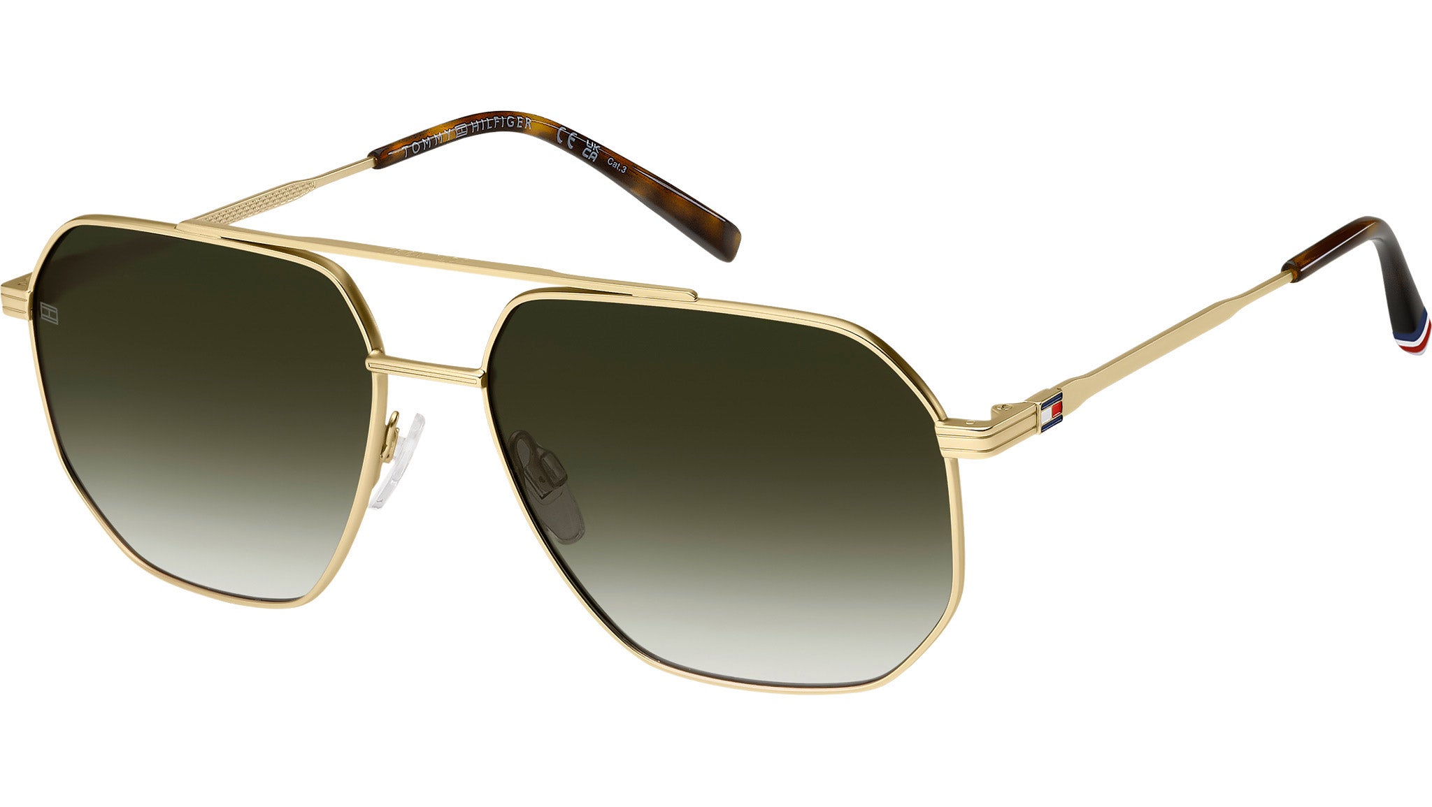 Occhiali da sole Tommy Hilfiger TH 2191/S AOZ 9K uomo con montatura rettangolare in metallo oro opaco e lenti verde sfumato. Occhiali da sole Tommy Hilfiger di ispirazione preppy, lo stile collegiale nato in America. L’estetica casual-chic è qui aggiornata da dettagli attuali, come il doppio ponte che caratterizza il frontale. La bandiera del brand decora le aste ed è replicata sulla punta del terminale sinistro. Forme e materiali lavorano insieme per offrire leggerezza, mentre i naselli permettono maggiore stabilità. Il modello è personalizzabile con lenti da sole graduate. Linea: Modern Preppy. Codice modello: 207946. Codice colore: AOZ 9K. Rivenditore autorizzato Tommy Hilfiger online. Gli occhiali vengono consegnati con custodia e accessori originali e sono coperti dalla garanzia ufficiale di 12 mesi del produttore.