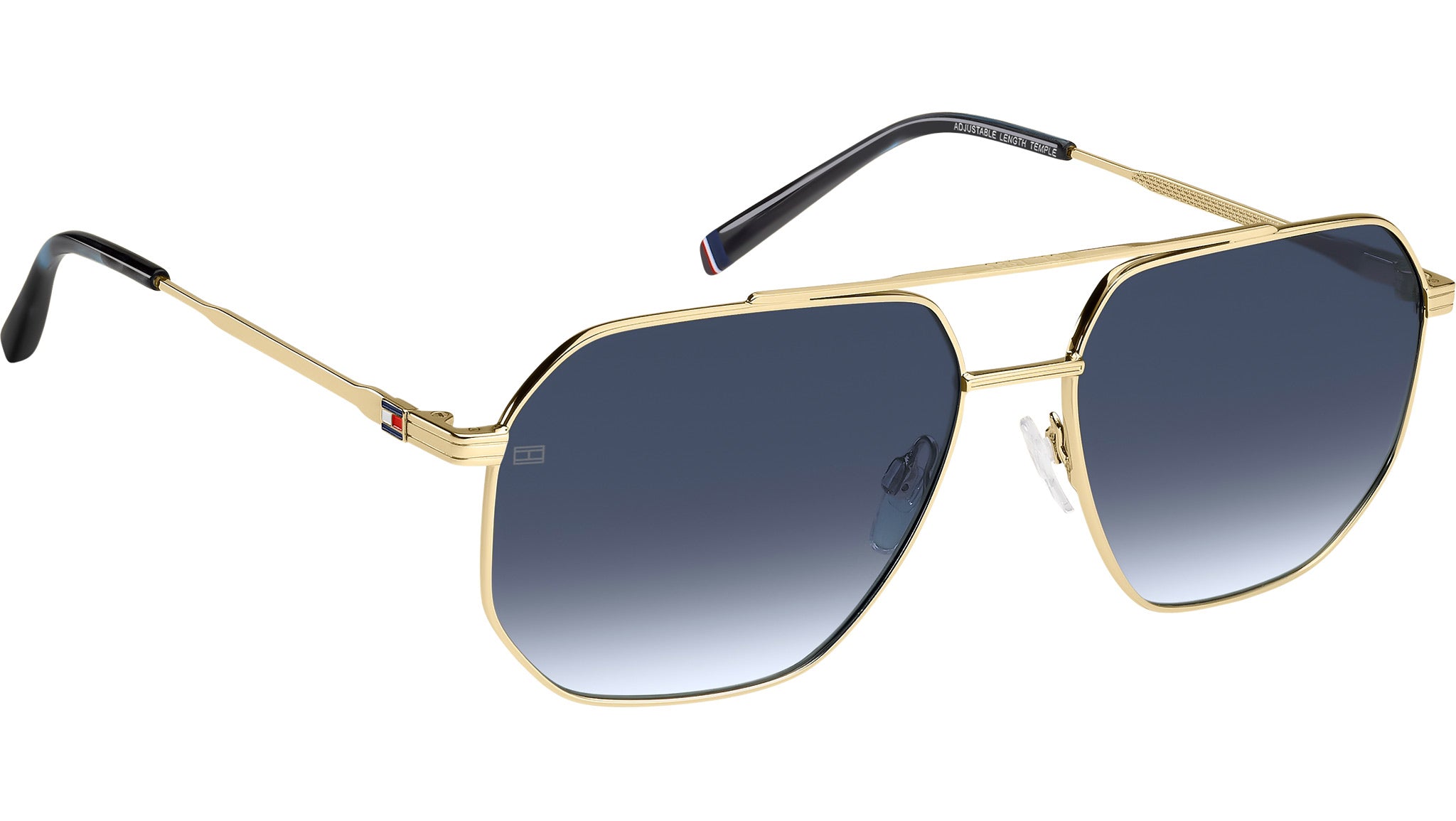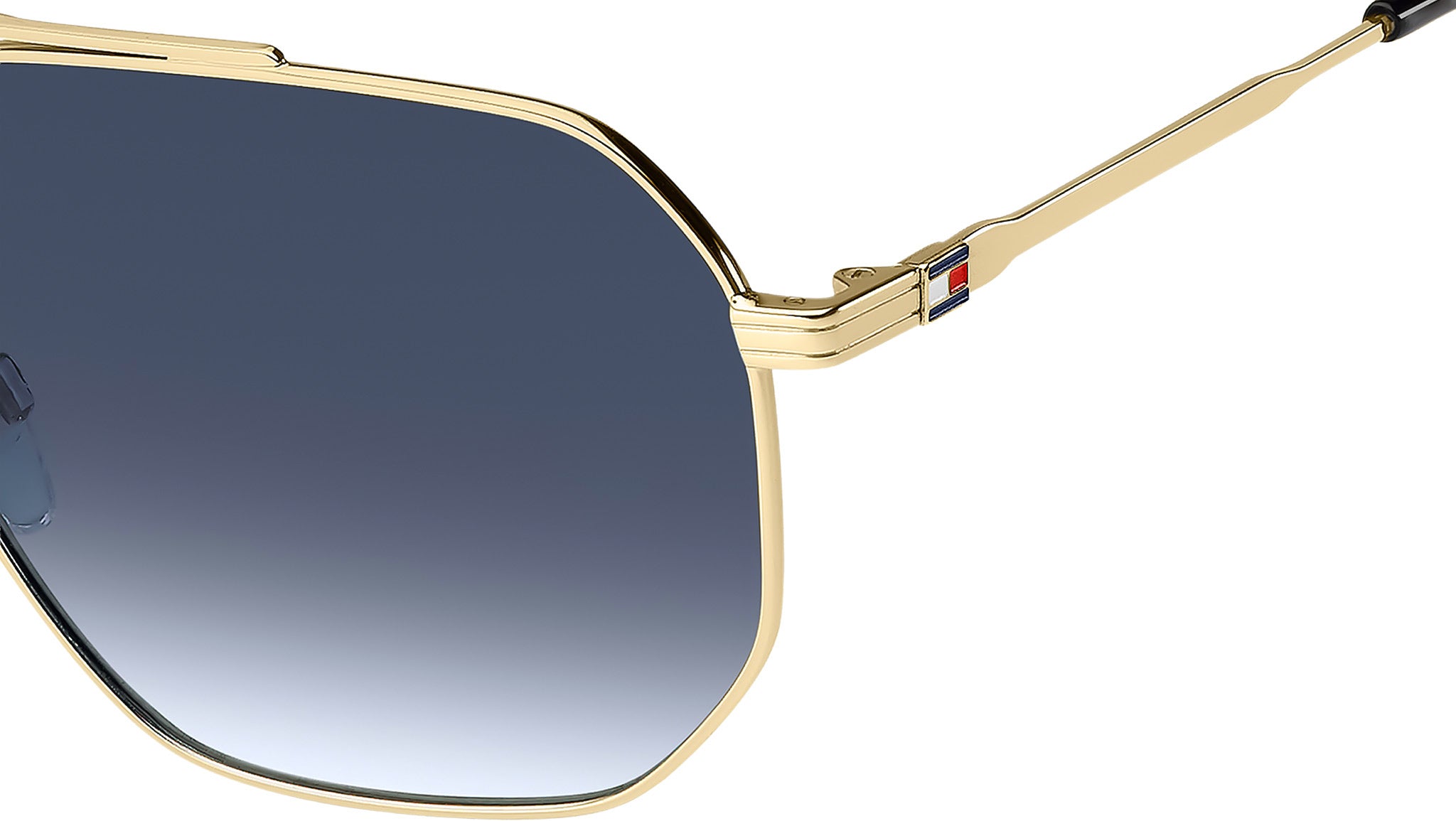 Occhiali da sole Tommy Hilfiger TH 2191/S J5G 08 uomo con montatura rettangolare in metallo oro e lenti blu scuro sfumato. Occhiali da sole Tommy Hilfiger di ispirazione preppy, lo stile collegiale nato in America. L’estetica casual-chic è qui aggiornata da dettagli attuali, come il doppio ponte che caratterizza il frontale. La bandiera del brand decora le aste ed è replicata sulla punta del terminale sinistro. Forme e materiali lavorano insieme per offrire leggerezza, mentre i naselli permettono maggiore stabilità. Il modello è personalizzabile con lenti da sole graduate. Linea: Modern Preppy. Codice modello: 207946. Codice colore: J5G 08. Rivenditore autorizzato Tommy Hilfiger online. Gli occhiali vengono consegnati con custodia e accessori originali e sono coperti dalla garanzia ufficiale di 12 mesi del produttore.