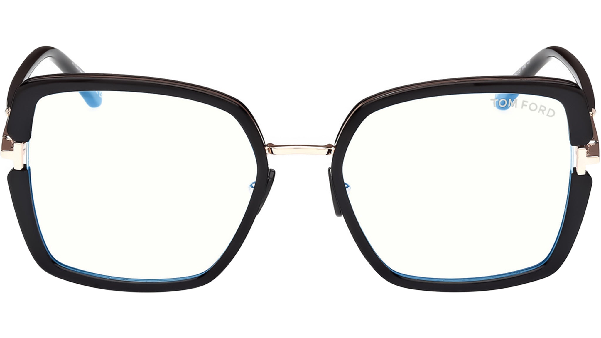 Occhiali da vista Tom Ford donna modello FT5985-B in acetato-metallo colore 001 nero lucido con lenti demo. Codice brand: FT5985. Codice colore: 001. Rivenditore autorizzato Tom Ford online. Gli occhiali vengono consegnati con custodia e accessori originali e sono coperti da garanzia standard di 12 mesi del produttore.