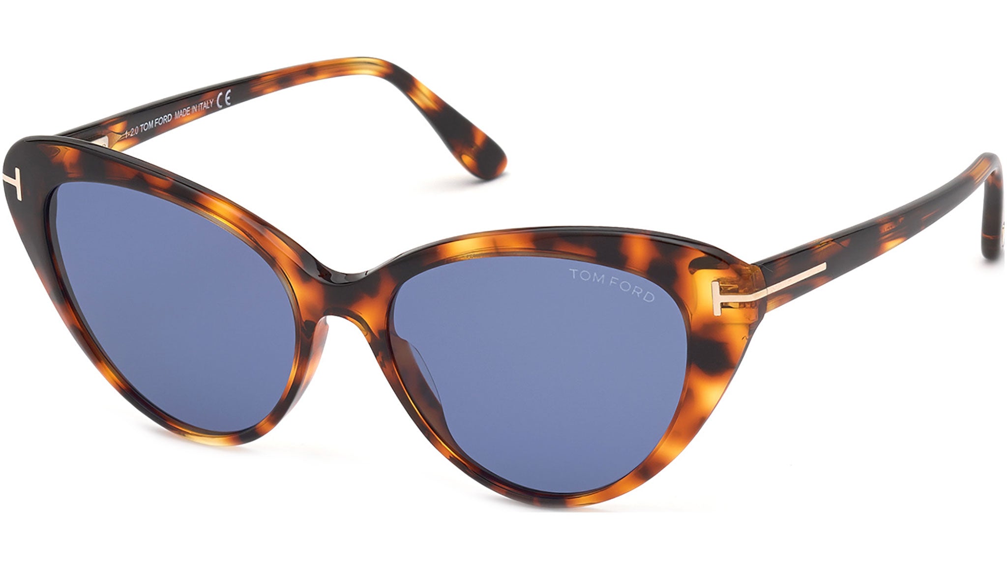Occhiali da sole Tom Ford Harlow codice FT0869 55V con montatura color avana multicolore e lenti color blu.