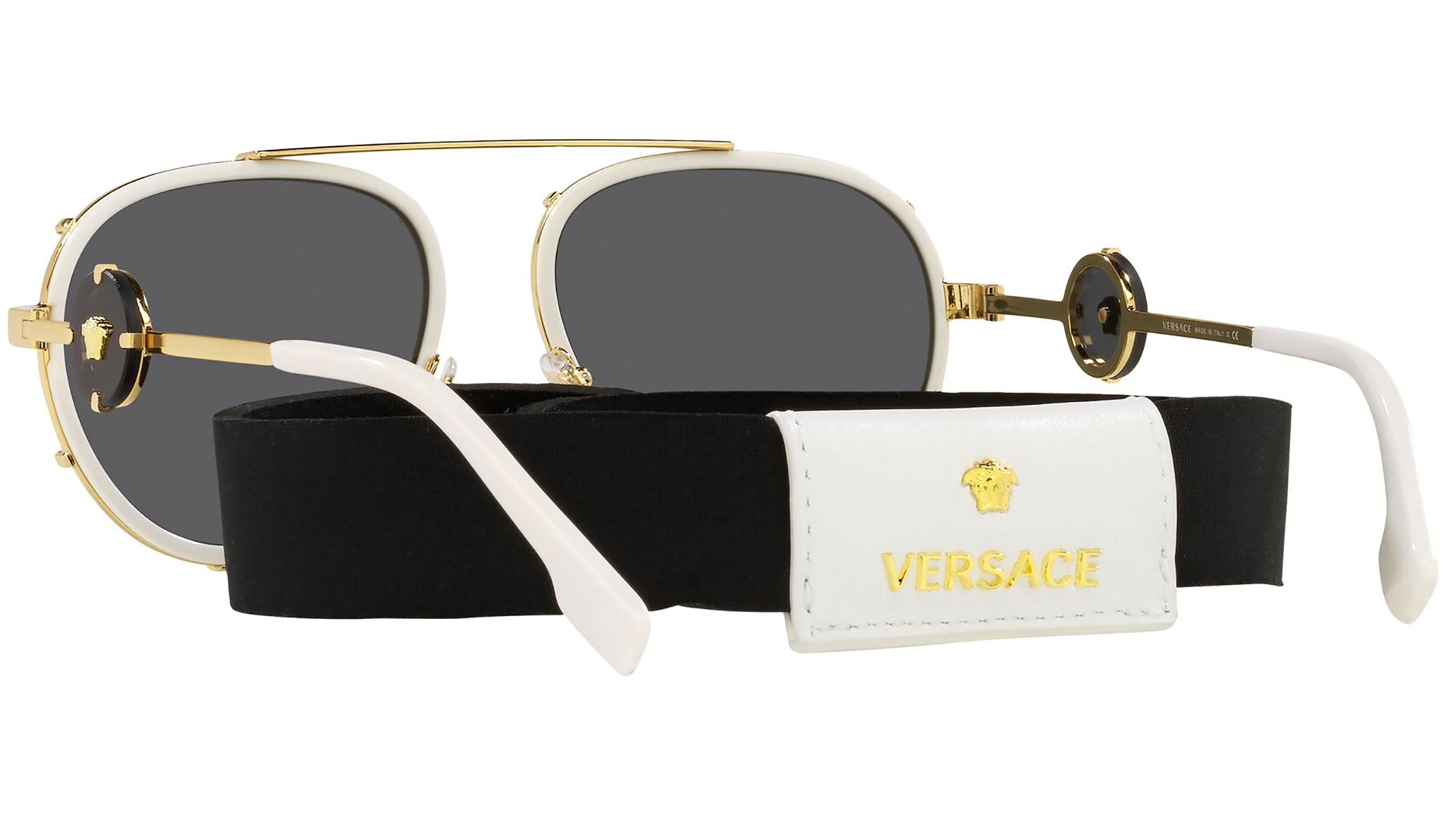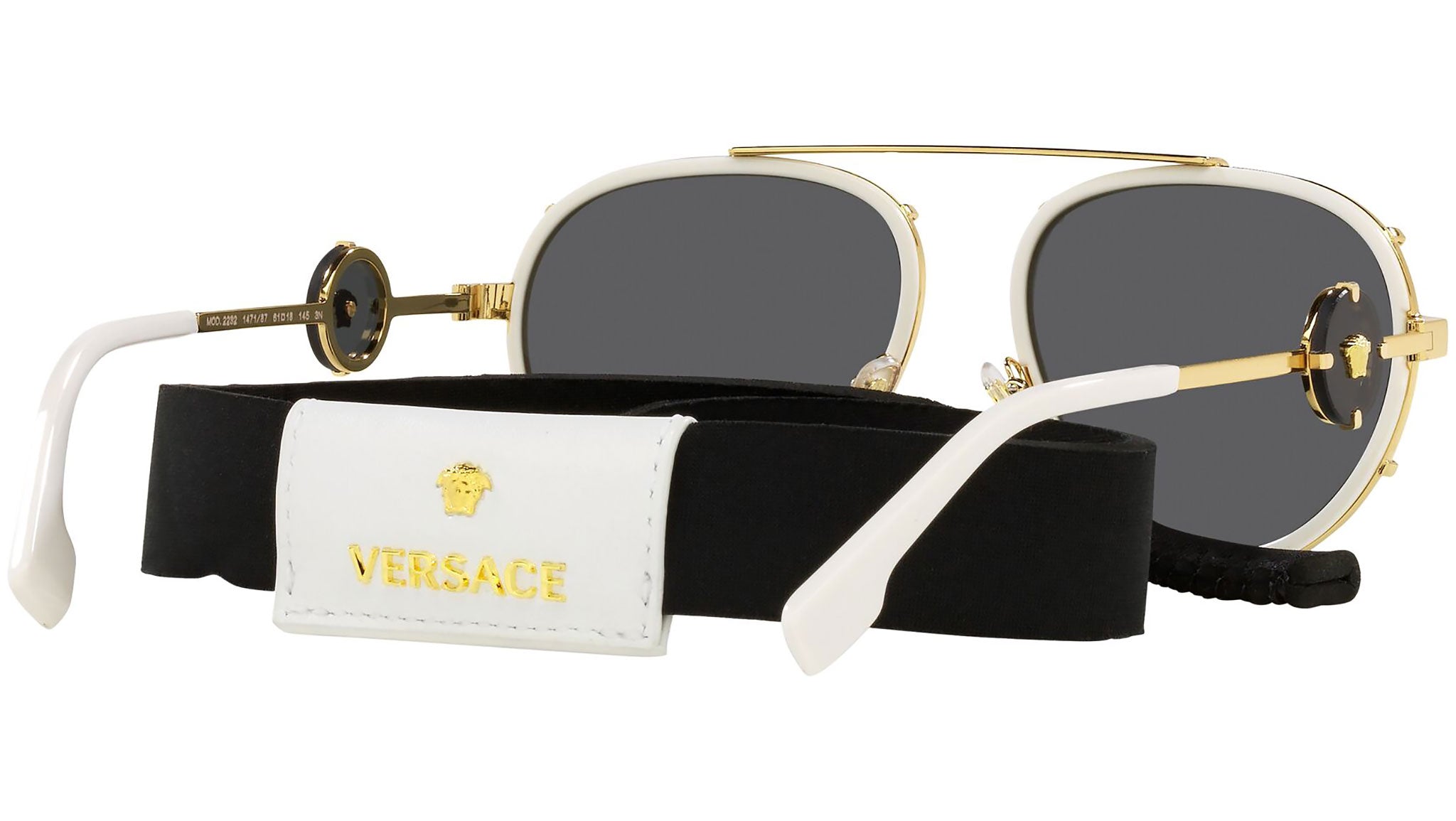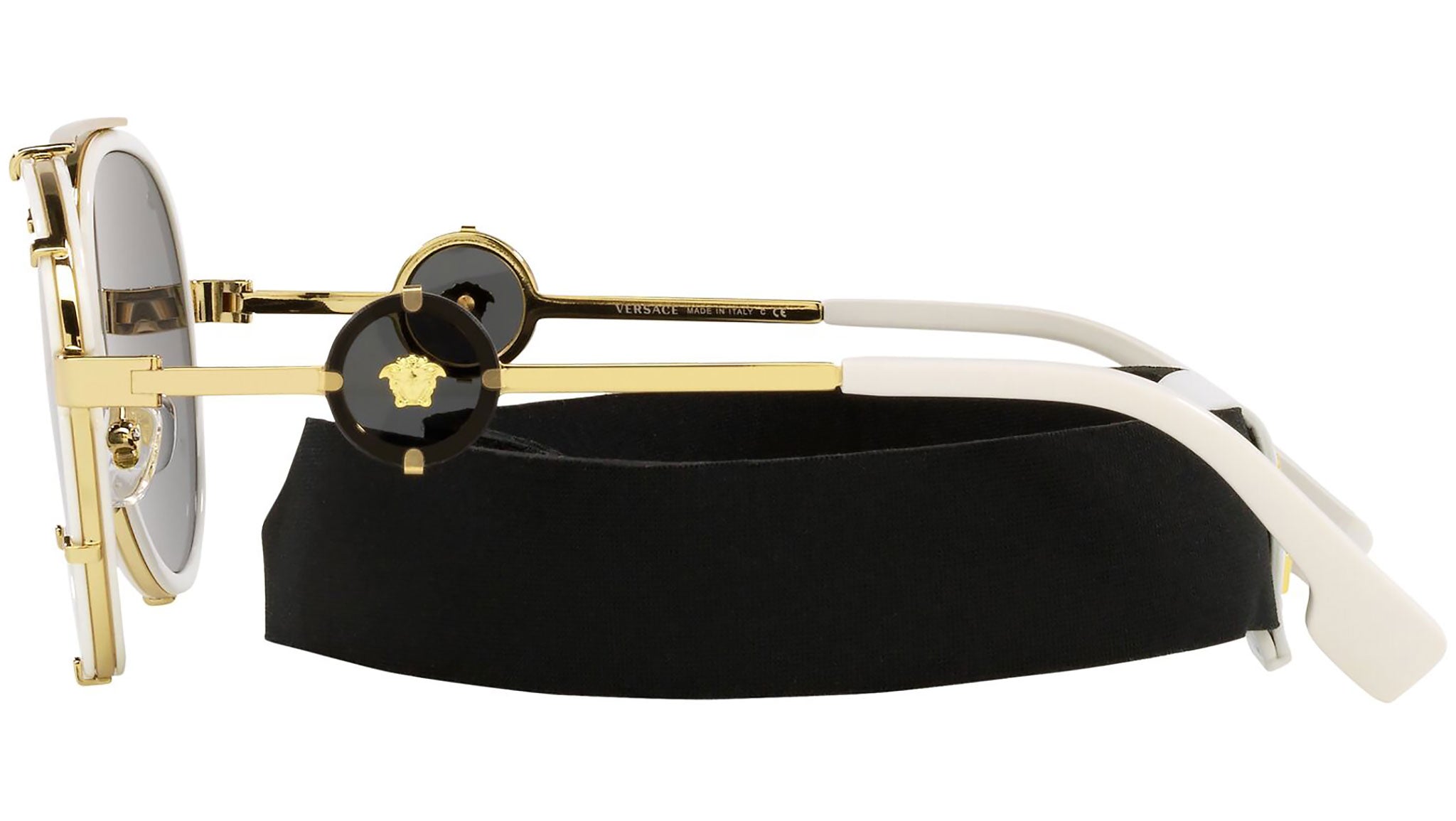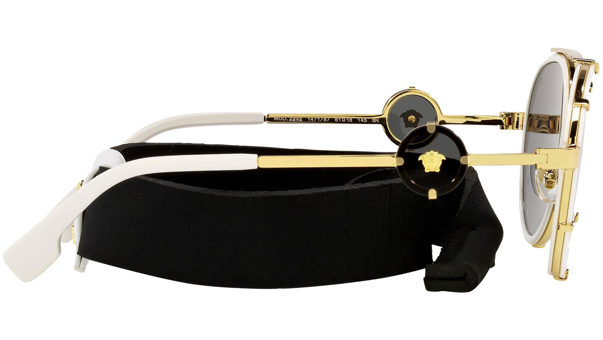 Occhiali da sole Versace modello VE2232 codice colore 147187, variante colore bianco con lenti color grigio scuro. Dedicata a chi desidera uno stile contemporaneo, sexy, sofisticato e dalla forte personalità, Versace è una delle case di alta moda e lusso più iconiche e famose al mondo. La collezione da sole combina innovazione tecnica e stile essenziale del brand, ed è fortemente caratterizzata dagli elementi decorativi che da sempre contraddistinguono la Maison.