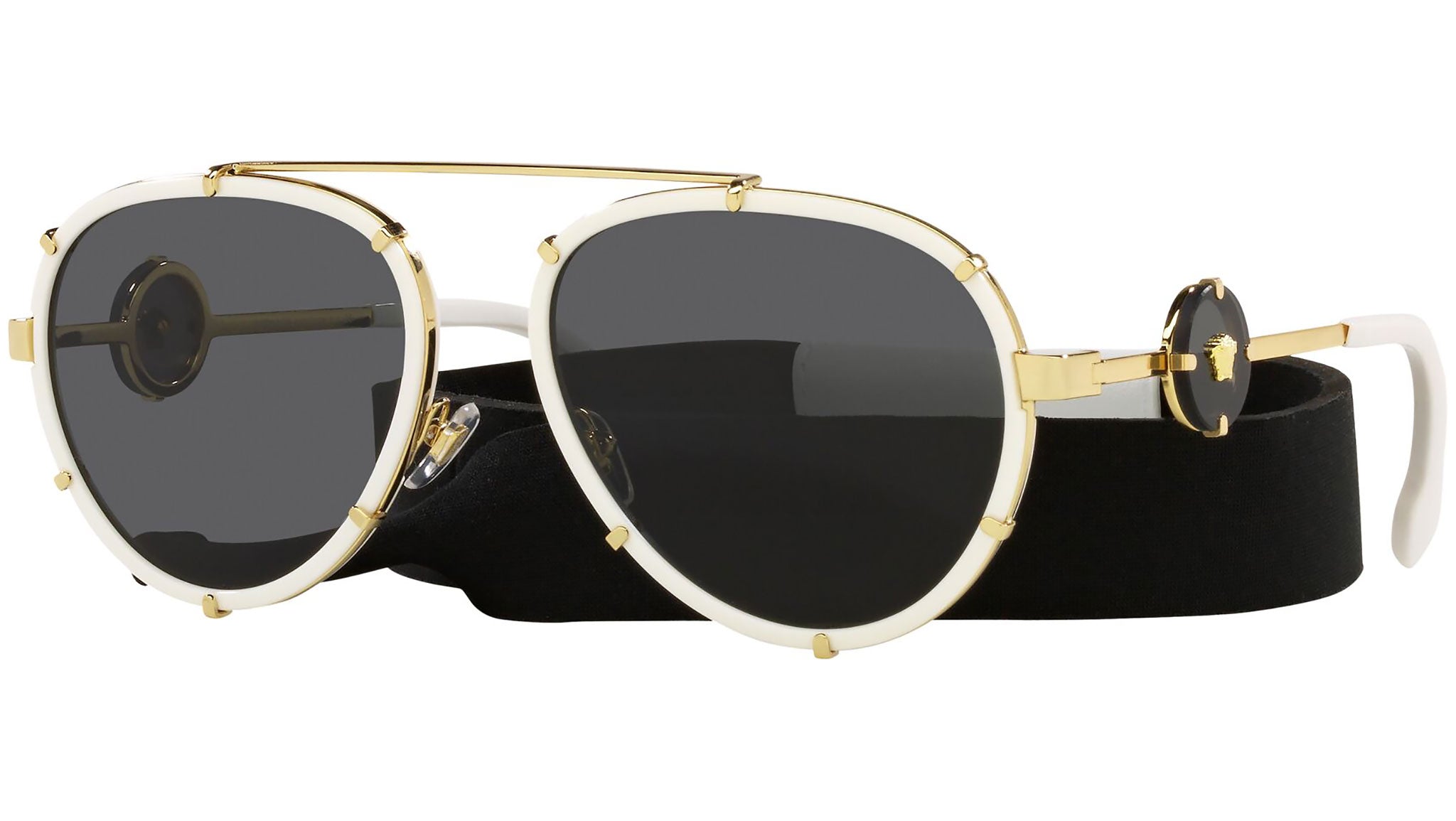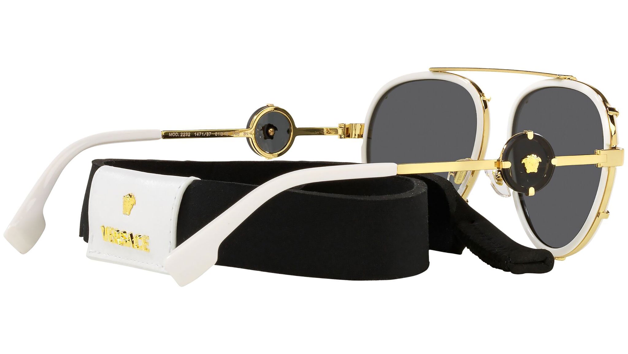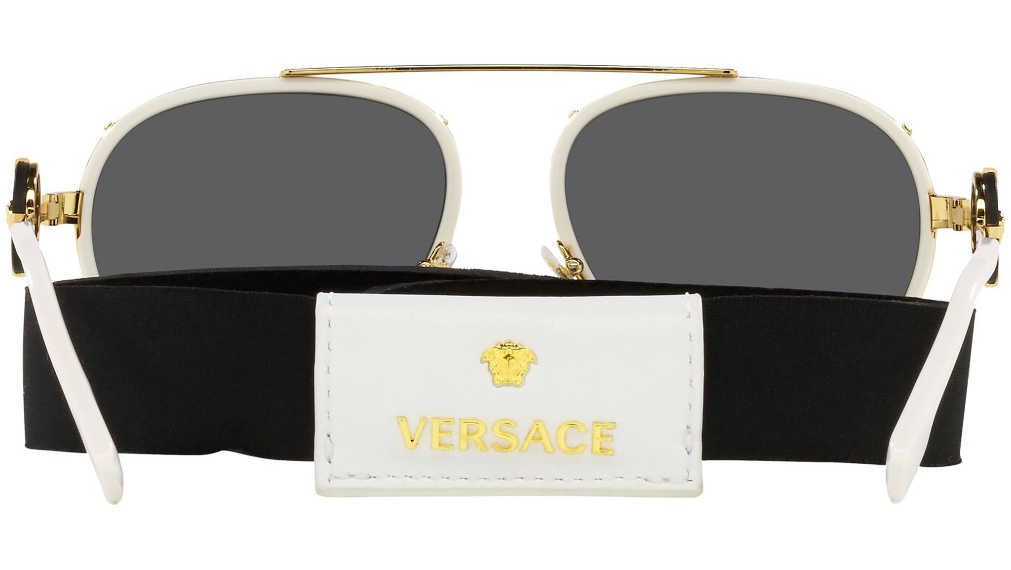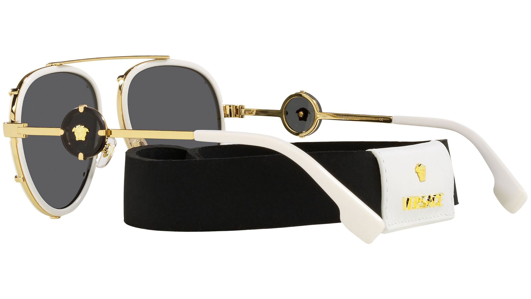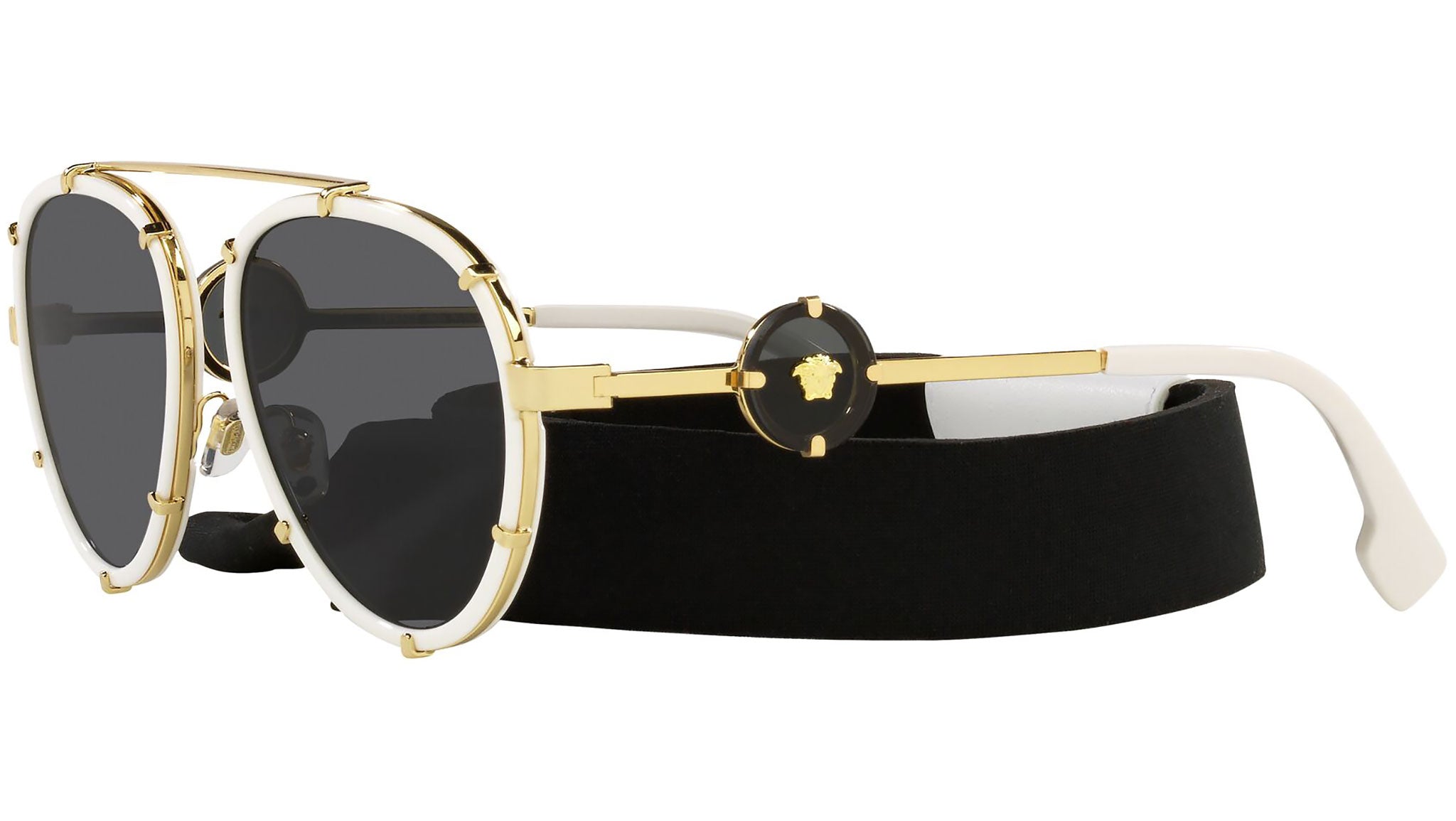 Occhiali da sole Versace modello VE2232 codice colore 147187, variante colore bianco con lenti color grigio scuro. Dedicata a chi desidera uno stile contemporaneo, sexy, sofisticato e dalla forte personalità, Versace è una delle case di alta moda e lusso più iconiche e famose al mondo. La collezione da sole combina innovazione tecnica e stile essenziale del brand, ed è fortemente caratterizzata dagli elementi decorativi che da sempre contraddistinguono la Maison.