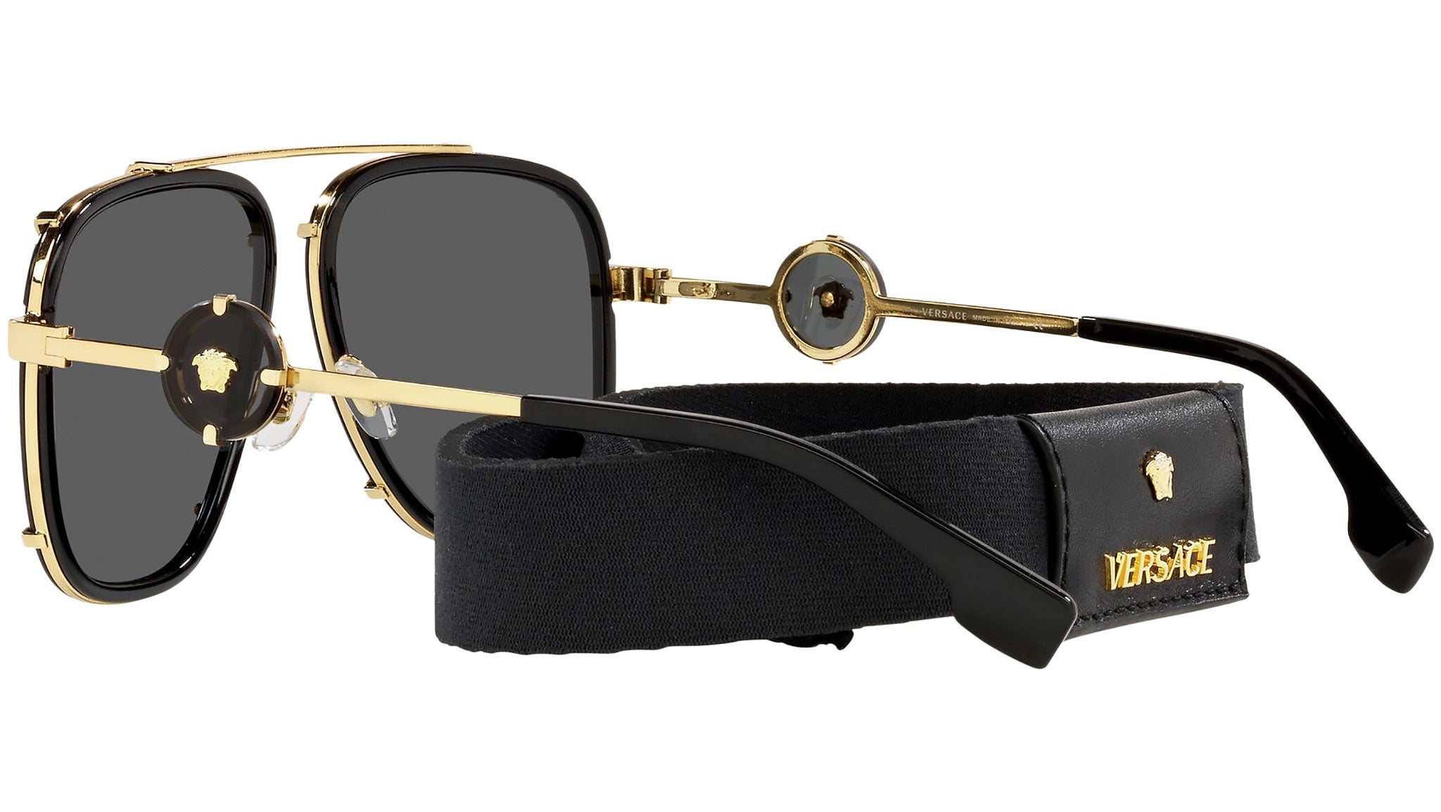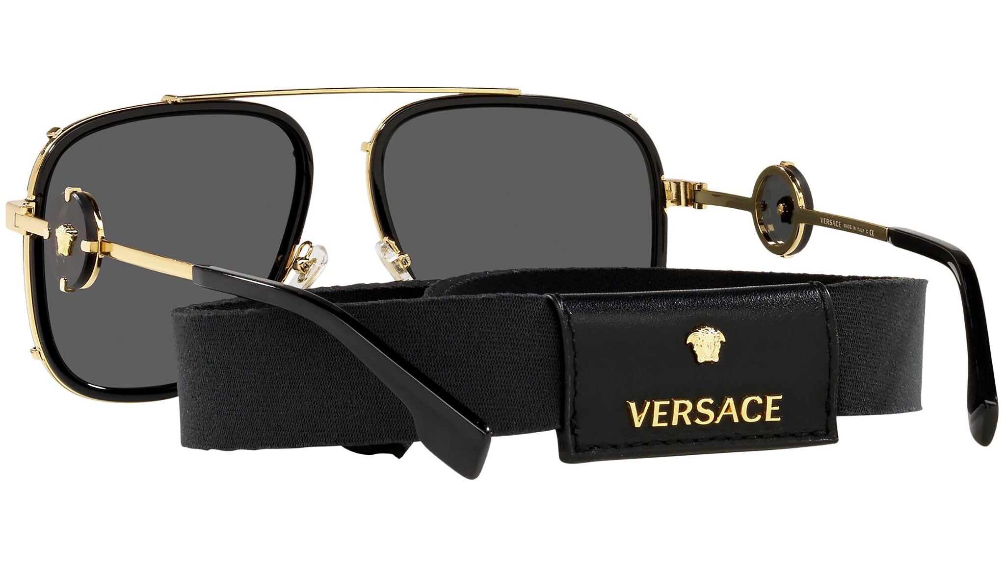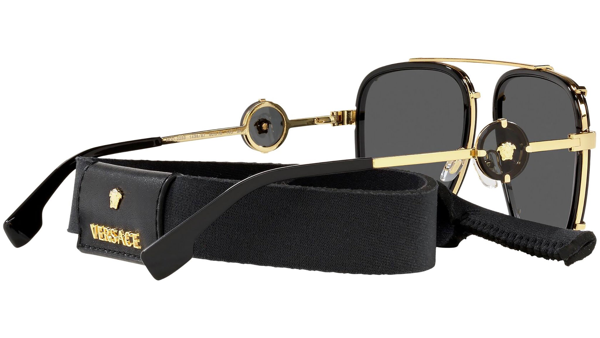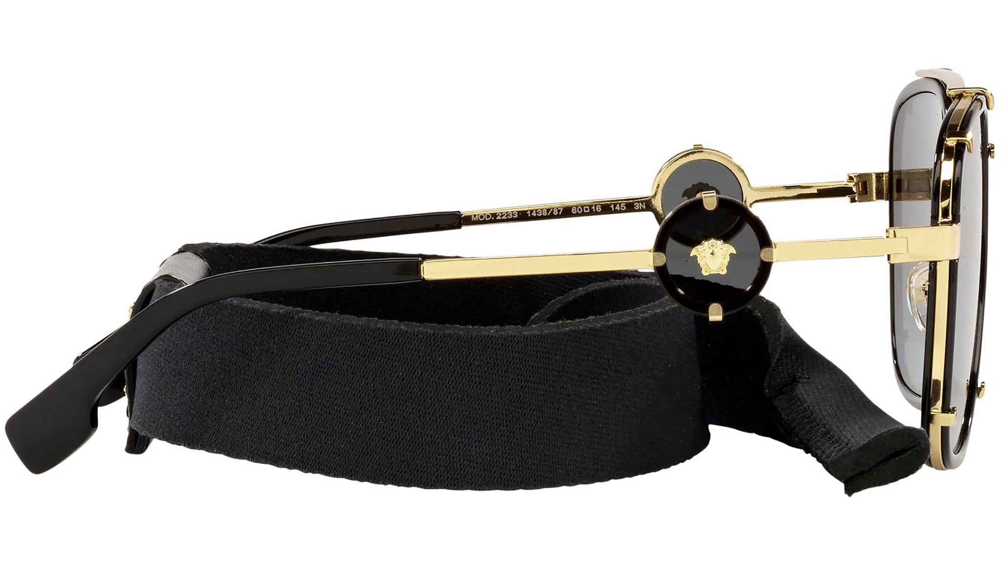 Occhiali da sole Versace modello VE2233 codice colore 143887, variante colore nero con lenti color grigio scuro. Dedicata a chi desidera uno stile contemporaneo, sexy, sofisticato e dalla forte personalità, Versace è una delle case di alta moda e lusso più iconiche e famose al mondo. La collezione da sole combina innovazione tecnica e stile essenziale del brand, ed è fortemente caratterizzata dagli elementi decorativi che da sempre contraddistinguono la Maison.