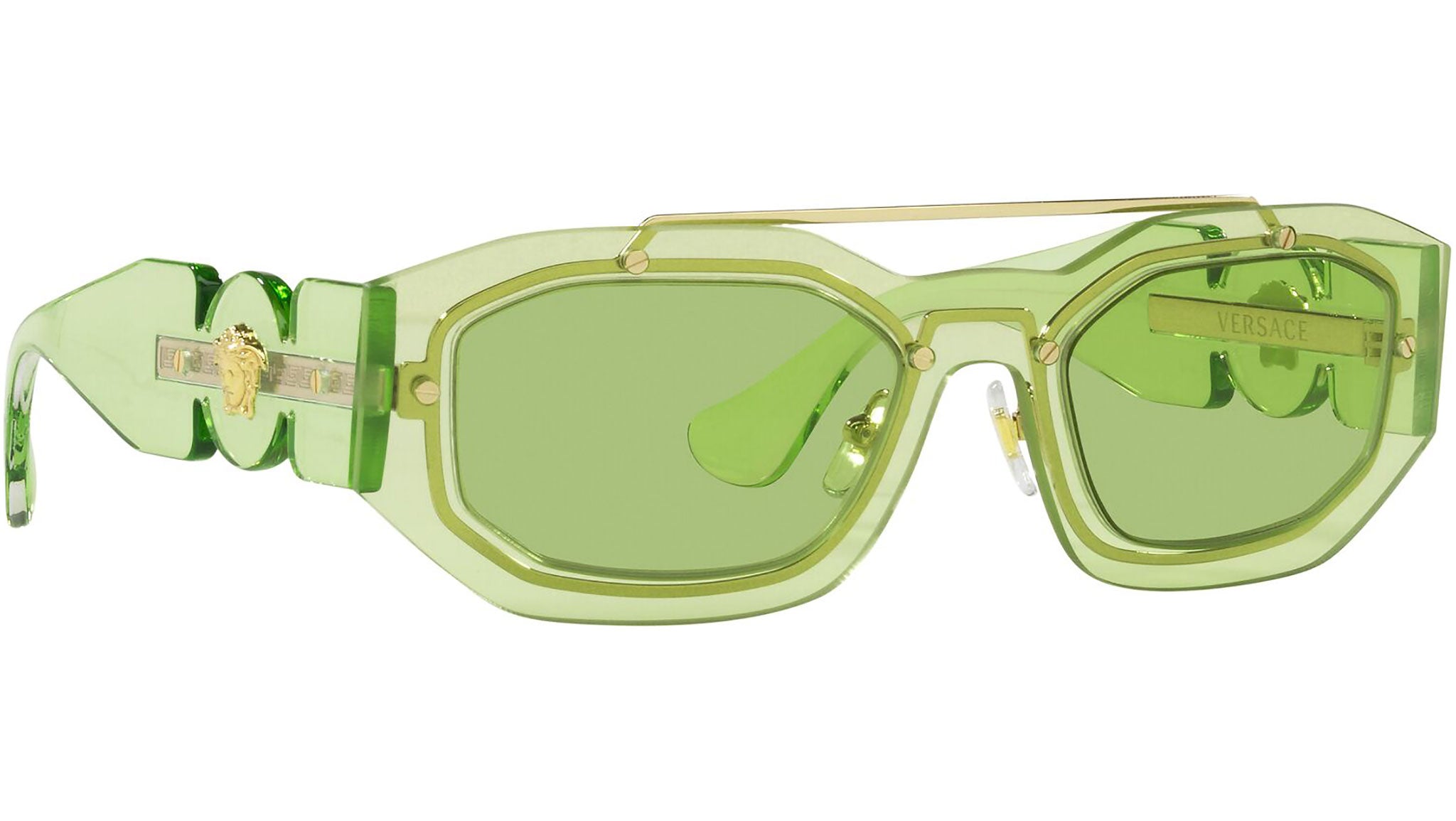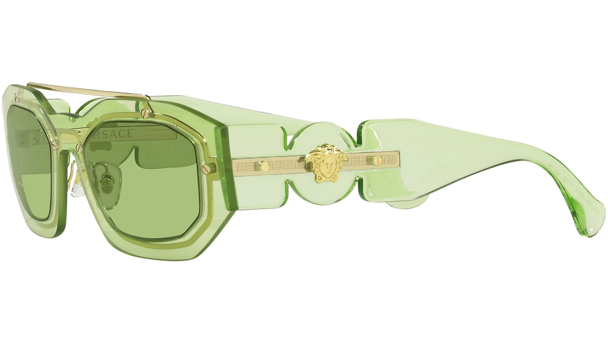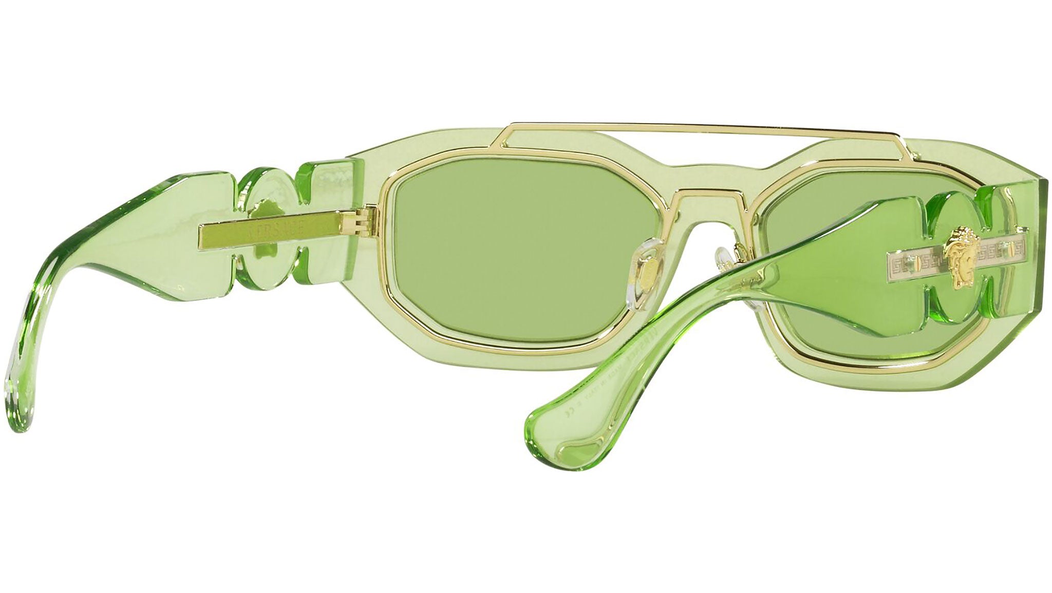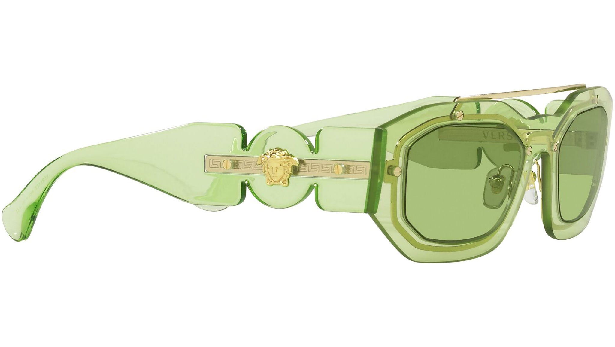 Occhiali da sole Versace modello VE2235 codice colore 1252/2 verde chiaro trasparente con lenti color verde. Dedicata a chi desidera uno stile contemporaneo, sexy, sofisticato e dalla forte personalità, Versace è una delle case di alta moda e lusso più iconiche e famose al mondo. La collezione da sole combina innovazione tecnica e stile essenziale del brand, ed è fortemente caratterizzata dagli elementi decorativi che da sempre contraddistinguono la Maison.