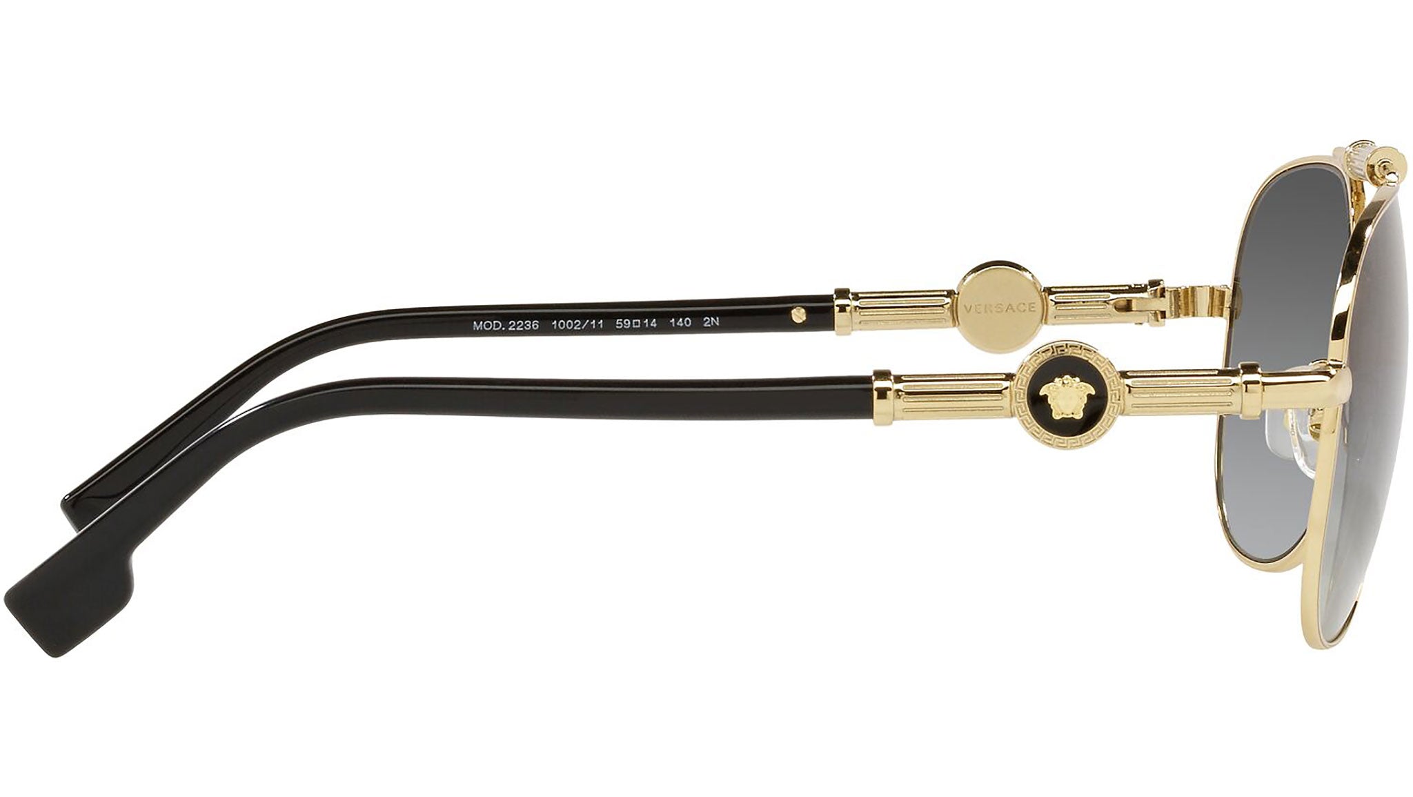 Occhiali da sole Versace modello VE2236 codice colore 100211 oro con lenti color grigio sfumato. Dedicata a chi desidera uno stile contemporaneo, sexy, sofisticato e dalla forte personalità, Versace è una delle case di alta moda e lusso più iconiche e famose al mondo. La collezione da sole combina innovazione tecnica e stile essenziale del brand, ed è fortemente caratterizzata dagli elementi decorativi che da sempre contraddistinguono la Maison.