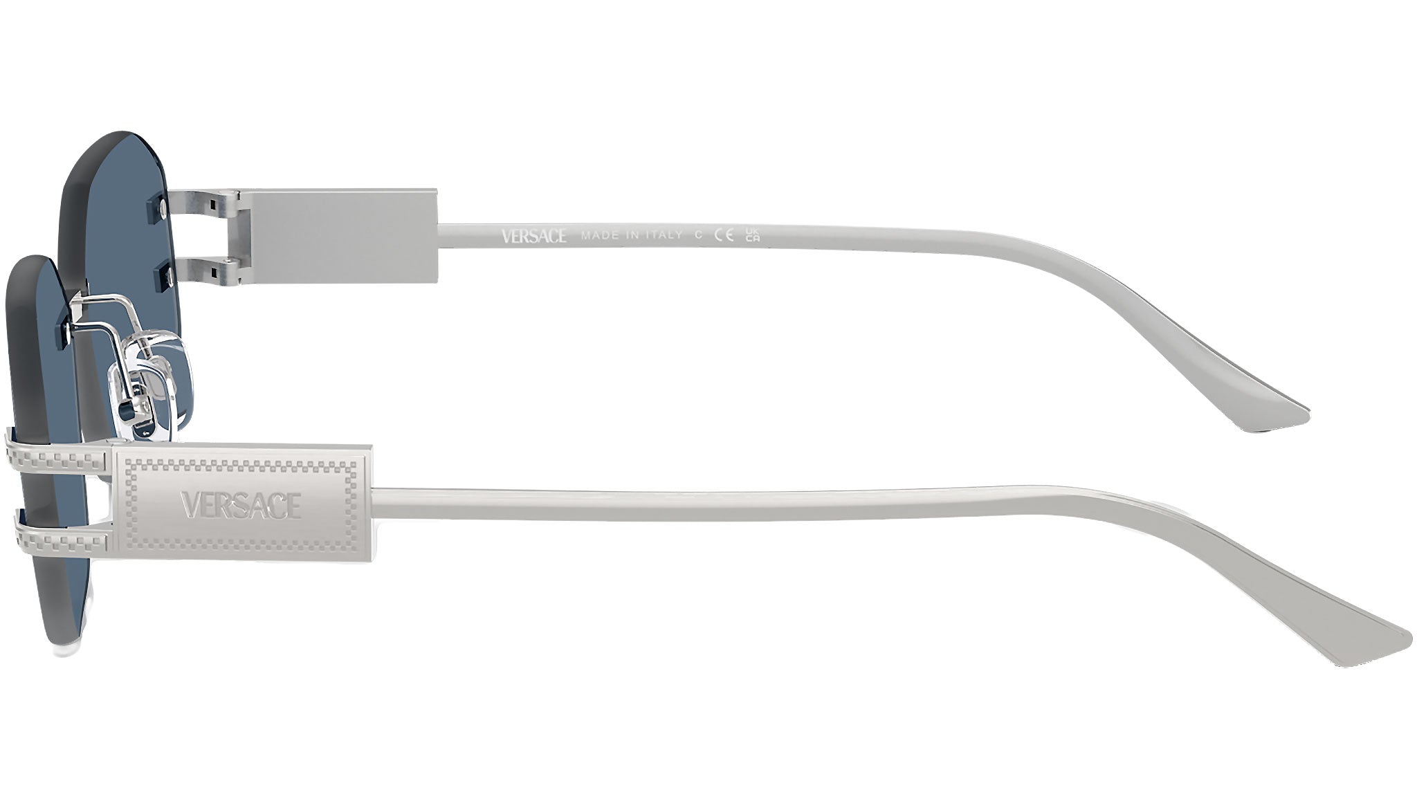 Occhiali da sole Versace donna modello 2274 rimless in metallo color argento con lenti blu scuro base 2. Naselli regolabili. Linea: Fashion Id. Codice brand: 0VE2274. Codice colore: 100080. Rivenditore autorizzato online Versace Eyewear. Ogni prodotto Versace viene consegnato con astuccio originale e accessori ed è coperto da garanzia del produttore di 12 mesi.