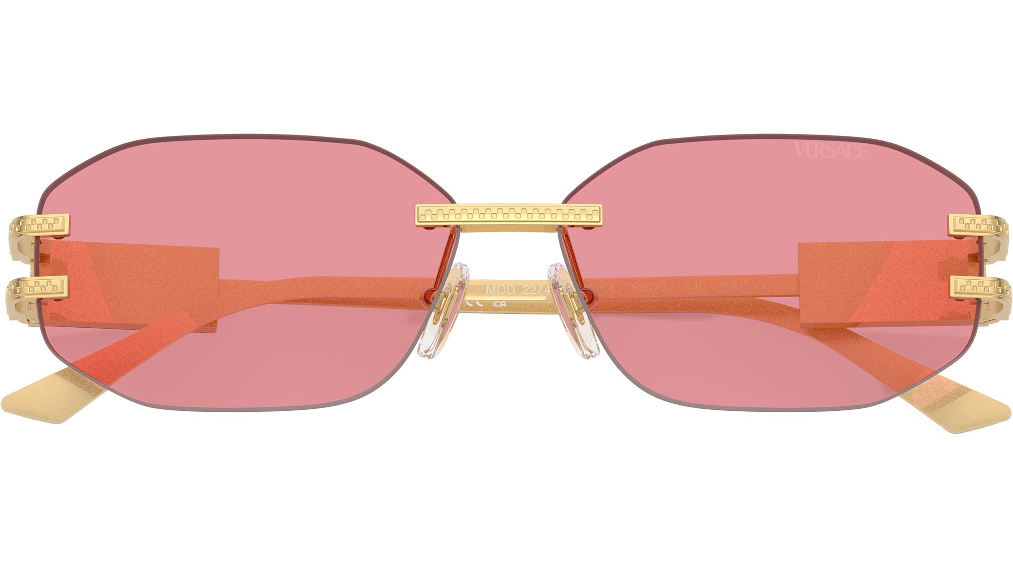 Occhiali da sole Versace donna modello 2274 rimless in metallo color oro con lenti rosa base 2. Naselli regolabili. Linea: Fashion Id. Codice brand: 0VE2274. Codice colore: 100284. Rivenditore autorizzato online Versace Eyewear. Ogni prodotto Versace viene consegnato con astuccio originale e accessori ed è coperto da garanzia del produttore di 12 mesi.