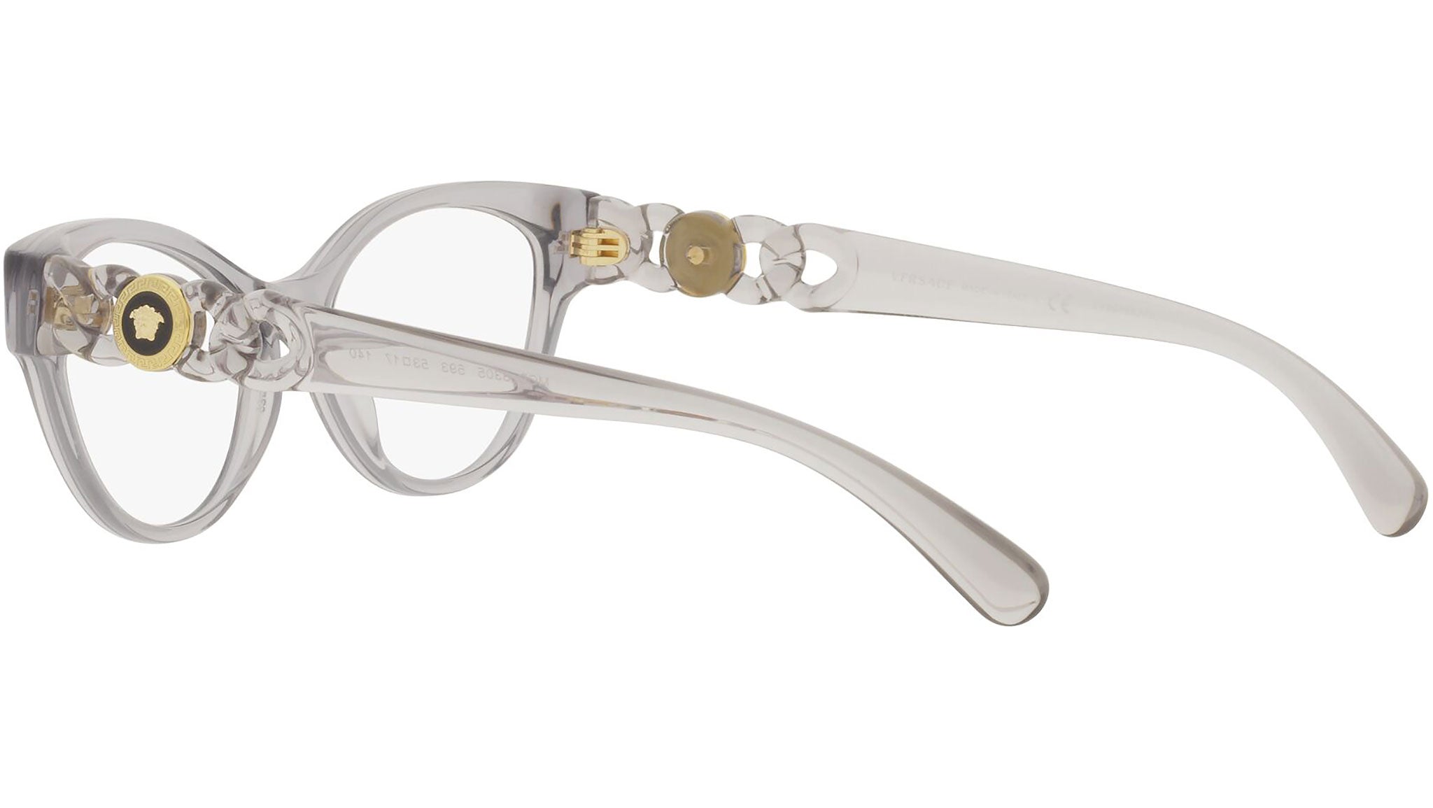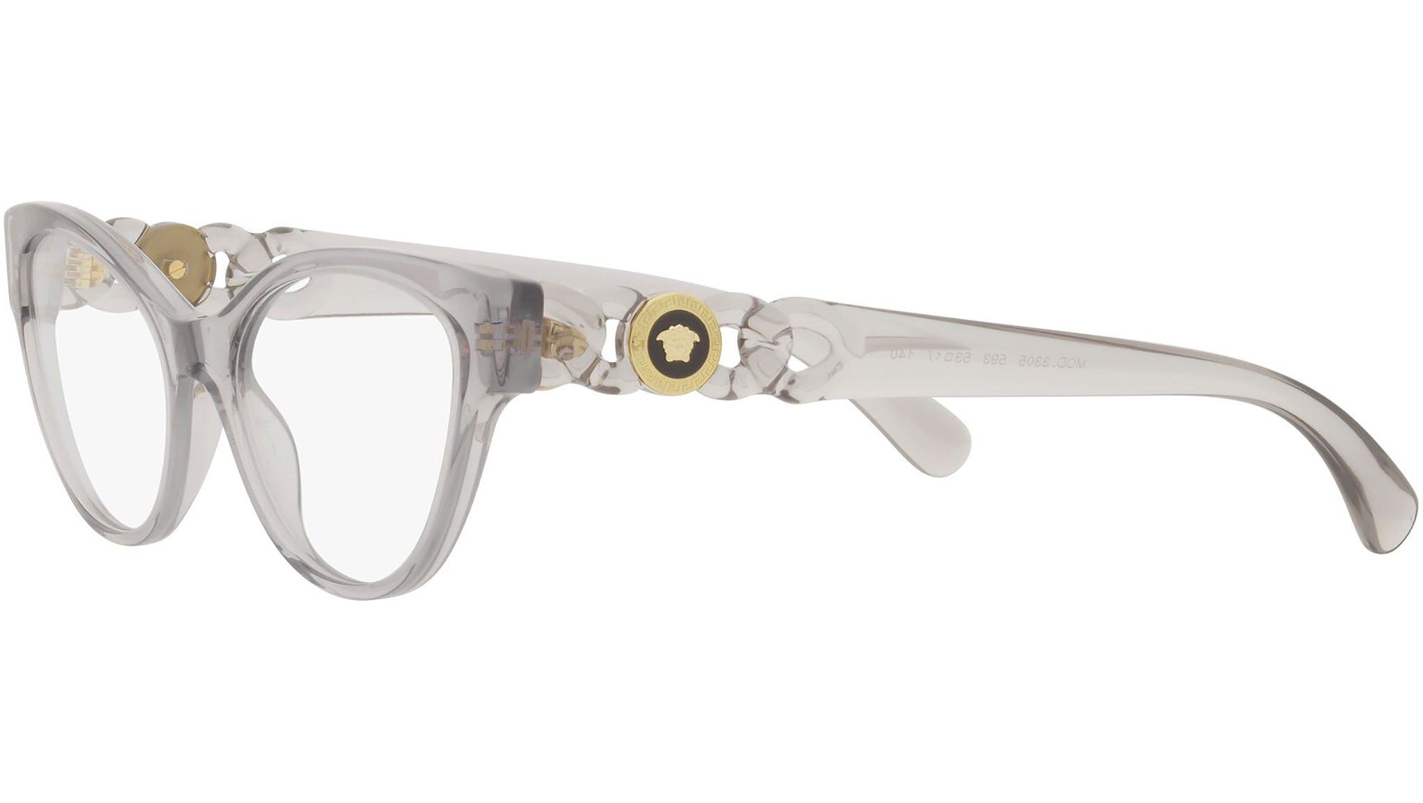 Occhiali da vista Versace modello VE3305 variante colore 593 grigio trasparente. Dedicata a chi desidera uno stile contemporaneo, sexy, sofisticato e dalla forte personalità, Versace è una delle case di alta moda e lusso più iconiche e famose al mondo. La collezione eyewear combina innovazione tecnica e stile essenziale del brand, ed è fortemente caratterizzata dagli elementi decorativi che da sempre contraddistinguono la Maison.
