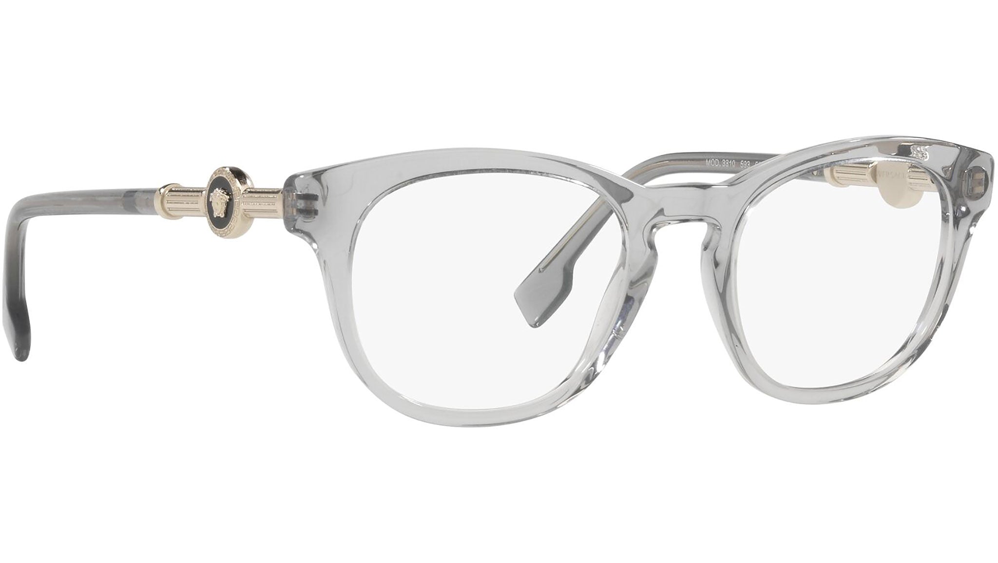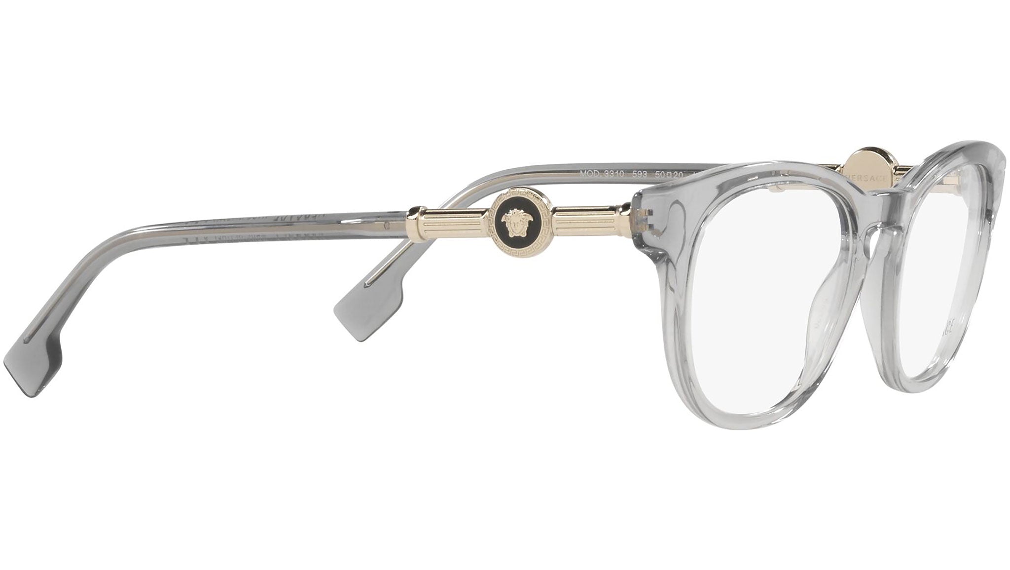 Occhiali da vista Versace modello VE3310 variante colore 593 grigio trasparente. Dedicata a chi desidera uno stile contemporaneo, sexy, sofisticato e dalla forte personalità, Versace è una delle case di alta moda e lusso più iconiche e famose al mondo. La collezione eyewear combina innovazione tecnica e stile essenziale del brand, ed è fortemente caratterizzata dagli elementi decorativi che da sempre contraddistinguono la Maison.