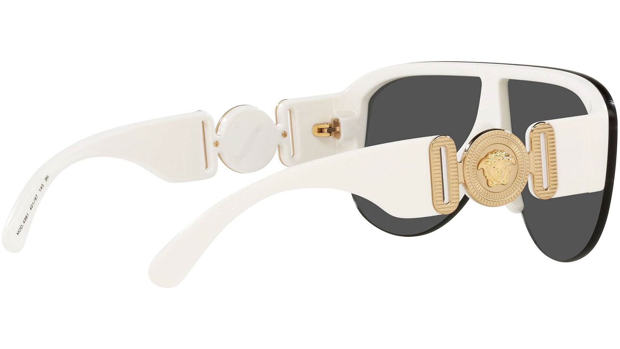 Occhiali da sole Versace modello VE4391 codice colore 401/87 bianco con lenti color grigio scuro. Dedicata a chi desidera uno stile contemporaneo, sexy, sofisticato e dalla forte personalità, Versace è una delle case di alta moda e lusso più iconiche e famose al mondo. La collezione da sole combina innovazione tecnica e stile essenziale del brand, ed è fortemente caratterizzata dagli elementi decorativi che da sempre contraddistinguono la Maison.