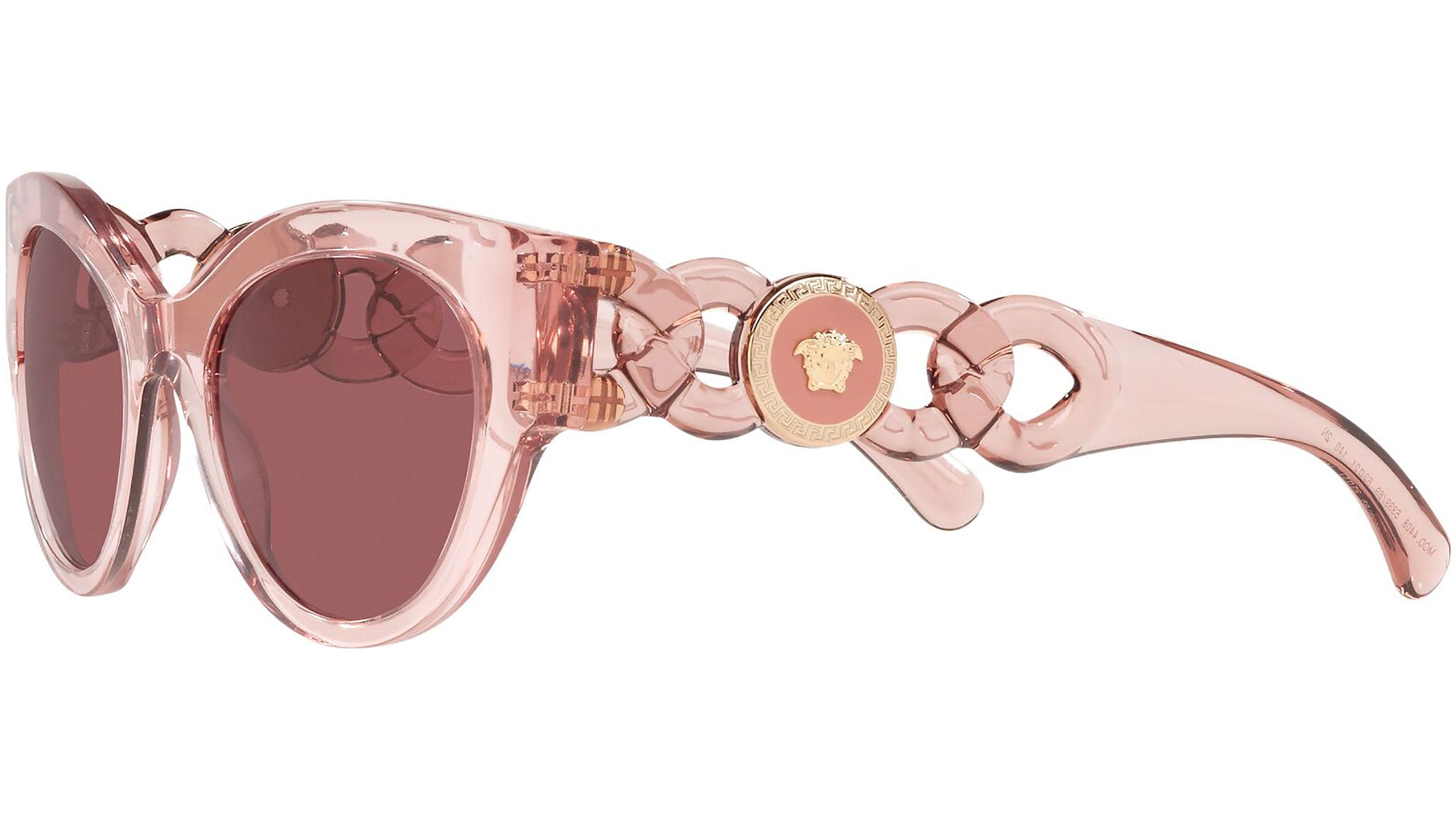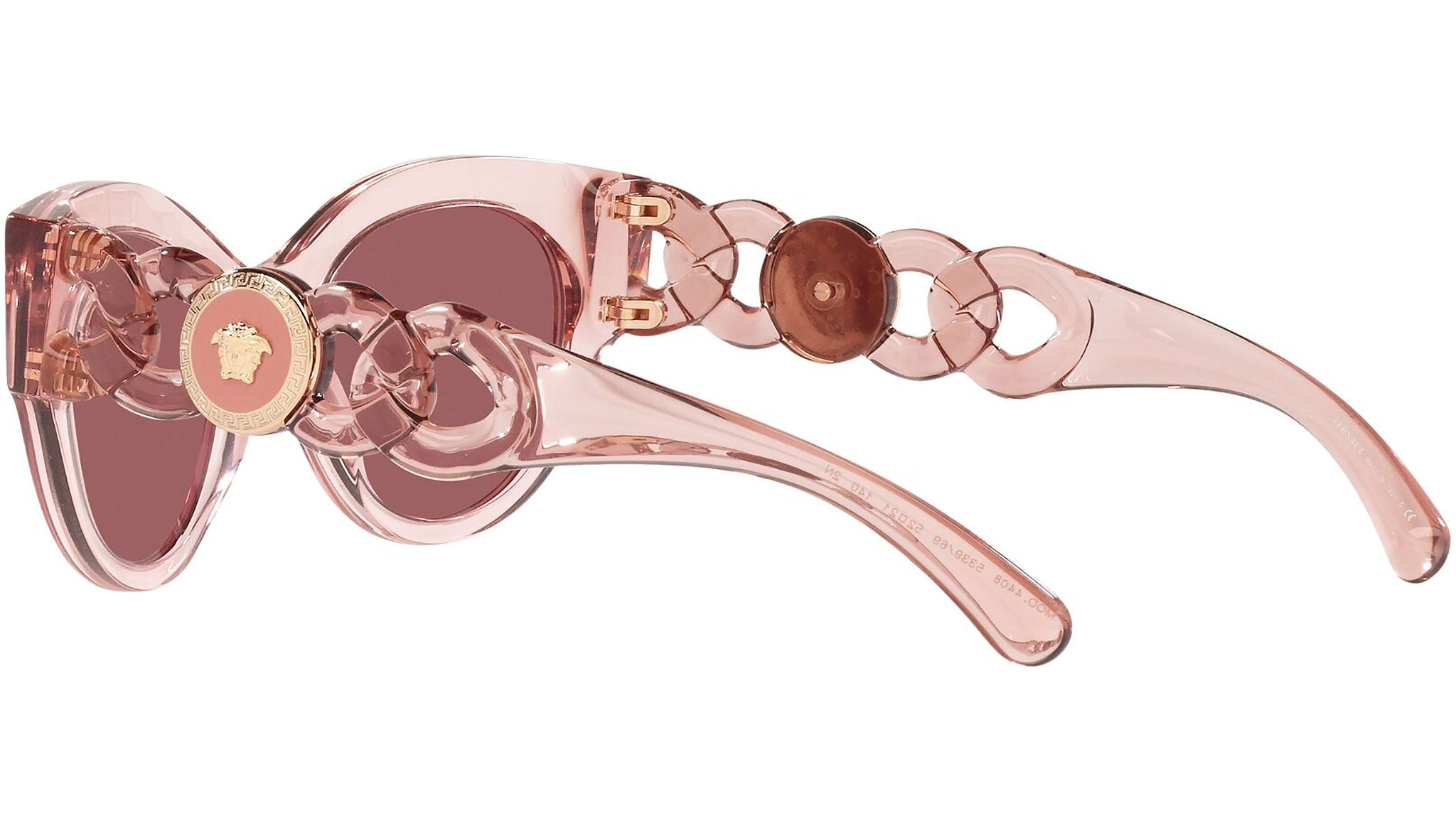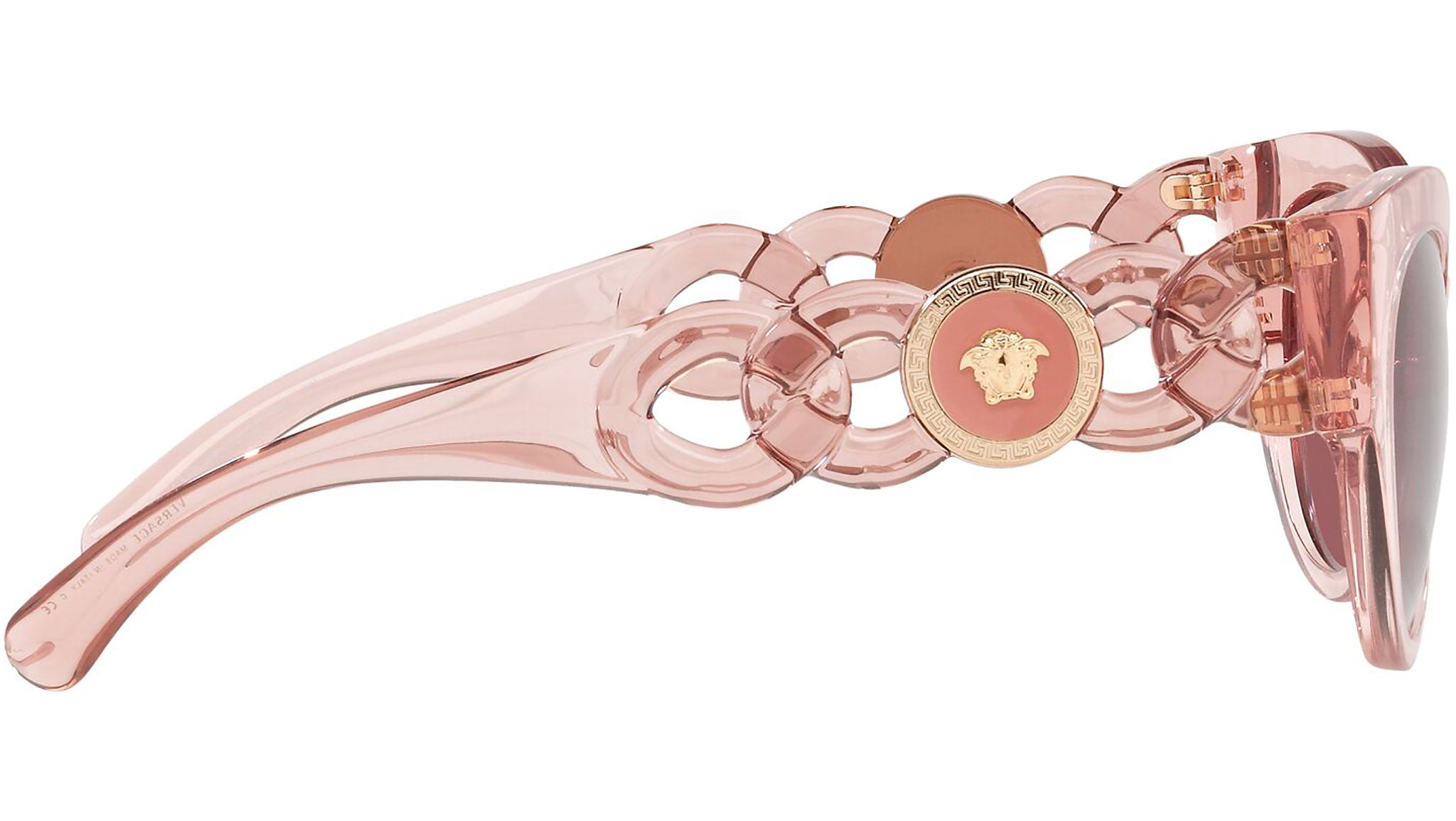 Occhiali da sole Versace modello VE4408 codice colore 533969 rosa trasparente con lenti color viola scuro. Dedicata a chi desidera uno stile contemporaneo, sexy, sofisticato e dalla forte personalità, Versace è una delle case di alta moda e lusso più iconiche e famose al mondo. La collezione da sole combina innovazione tecnica e stile essenziale del brand, ed è fortemente caratterizzata dagli elementi decorativi che da sempre contraddistinguono la Maison.
