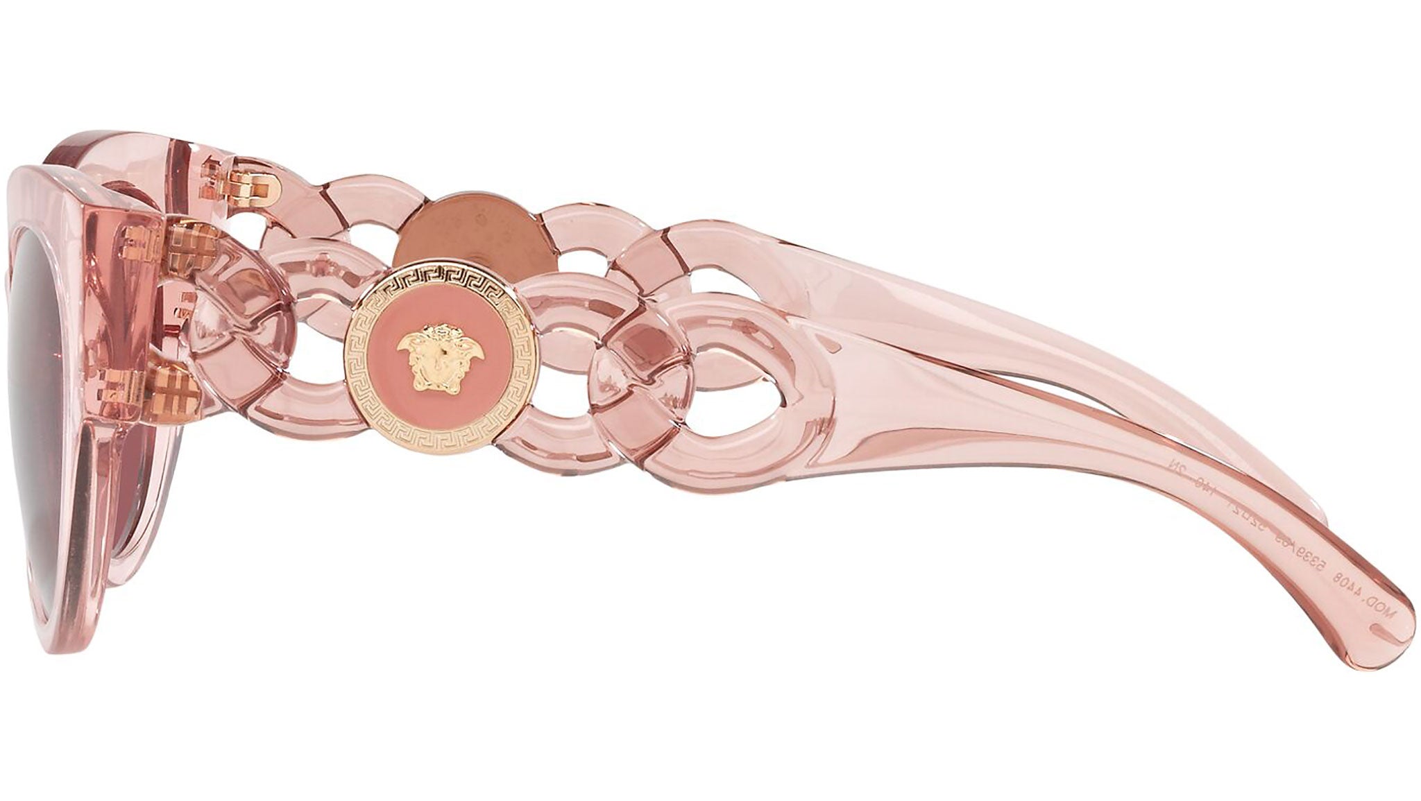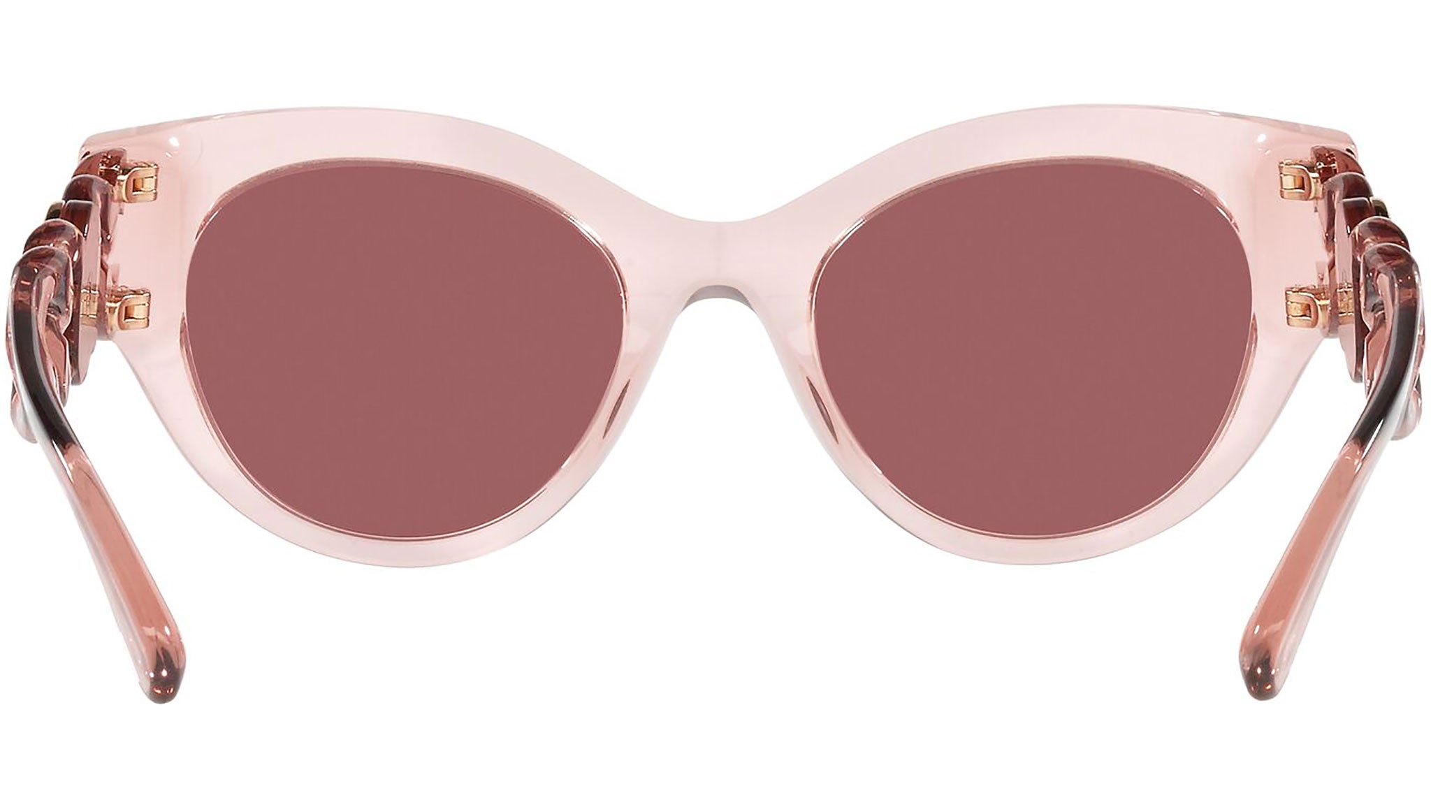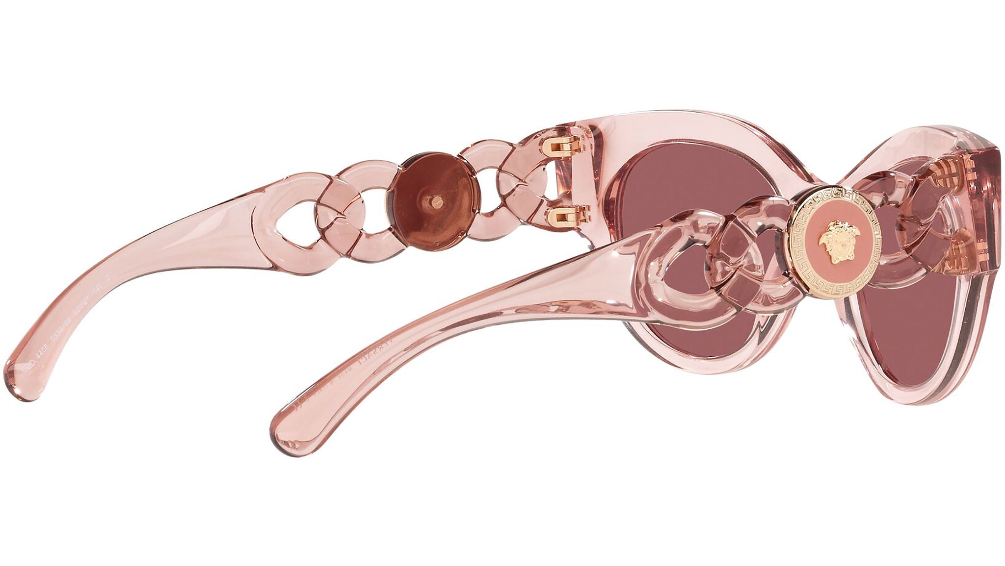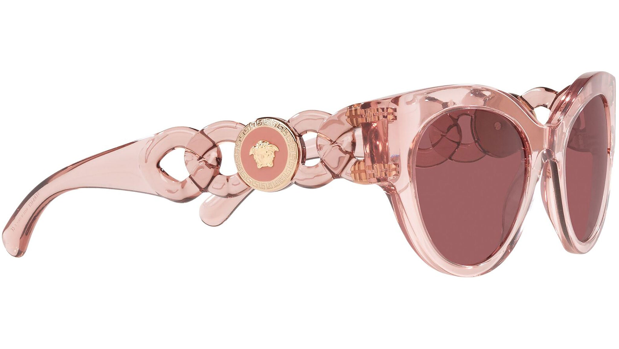 Occhiali da sole Versace modello VE4408 codice colore 533969 rosa trasparente con lenti color viola scuro. Dedicata a chi desidera uno stile contemporaneo, sexy, sofisticato e dalla forte personalità, Versace è una delle case di alta moda e lusso più iconiche e famose al mondo. La collezione da sole combina innovazione tecnica e stile essenziale del brand, ed è fortemente caratterizzata dagli elementi decorativi che da sempre contraddistinguono la Maison.